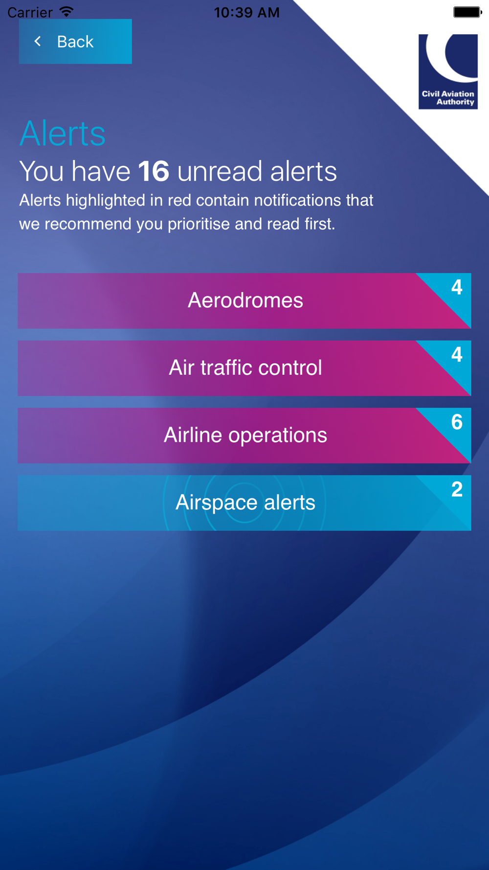 Tailored news and alerts from the CAA. Set your own preference for the alerts and news you need to or want to receive. App features push notifications and email alert management based on your app alert preferences.