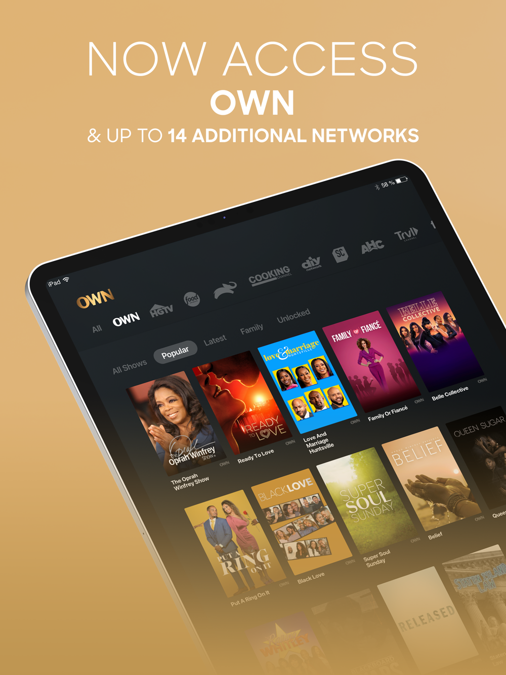 • Binge your favorite OWN series and specials including Ready to Love, Love & Marriage: Huntsville, The Haves and the Have Nots, Queen Sugar, Put a Ring On It - and many more!