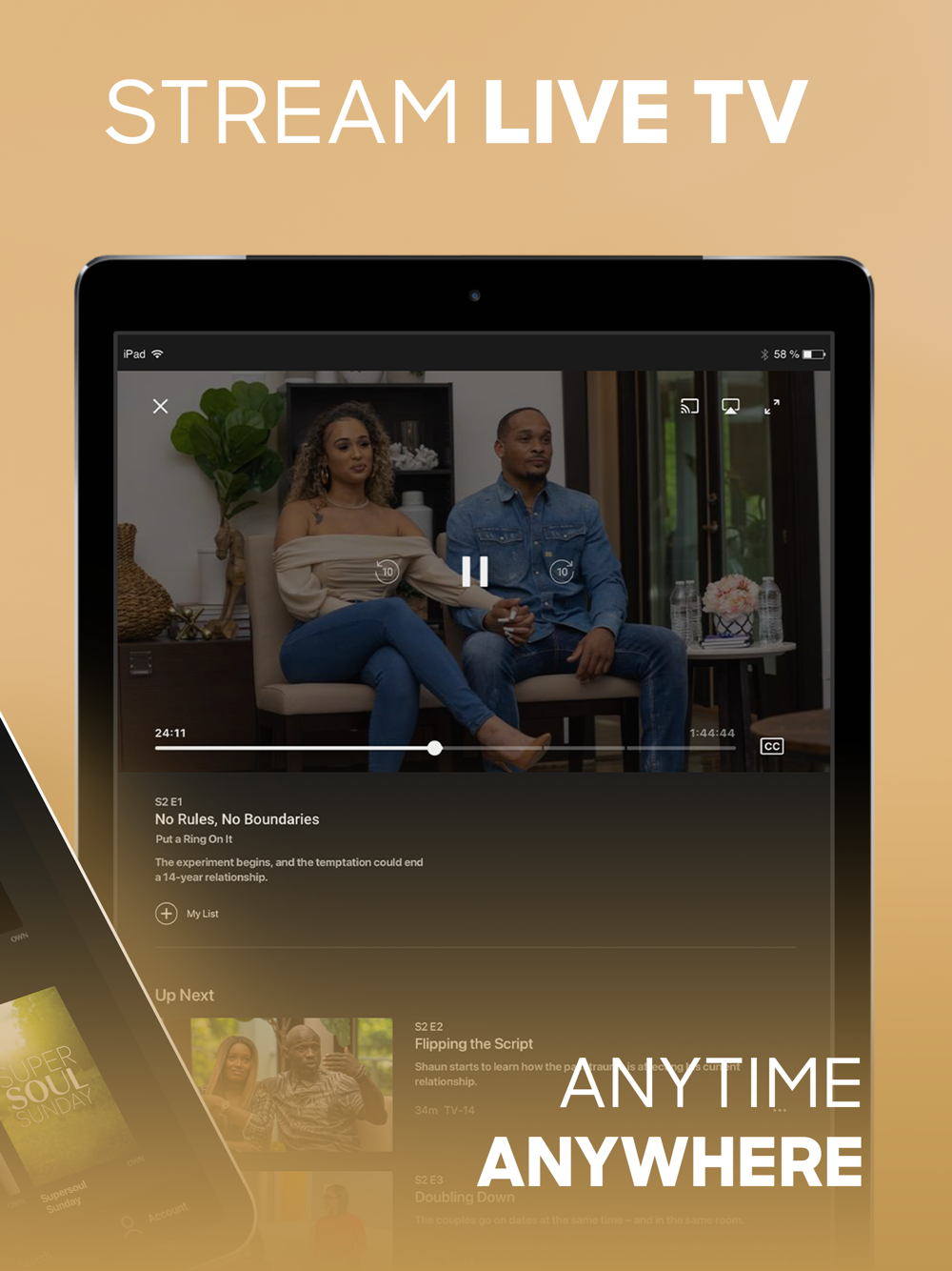 • Stream OWN and more networks LIVE anytime, anywhere on all your favorite devices