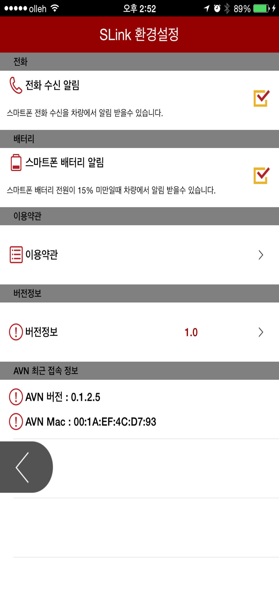 SLink 사용 중 스마트폰 배터리가 15% 미만 일때 알려 줍니다.