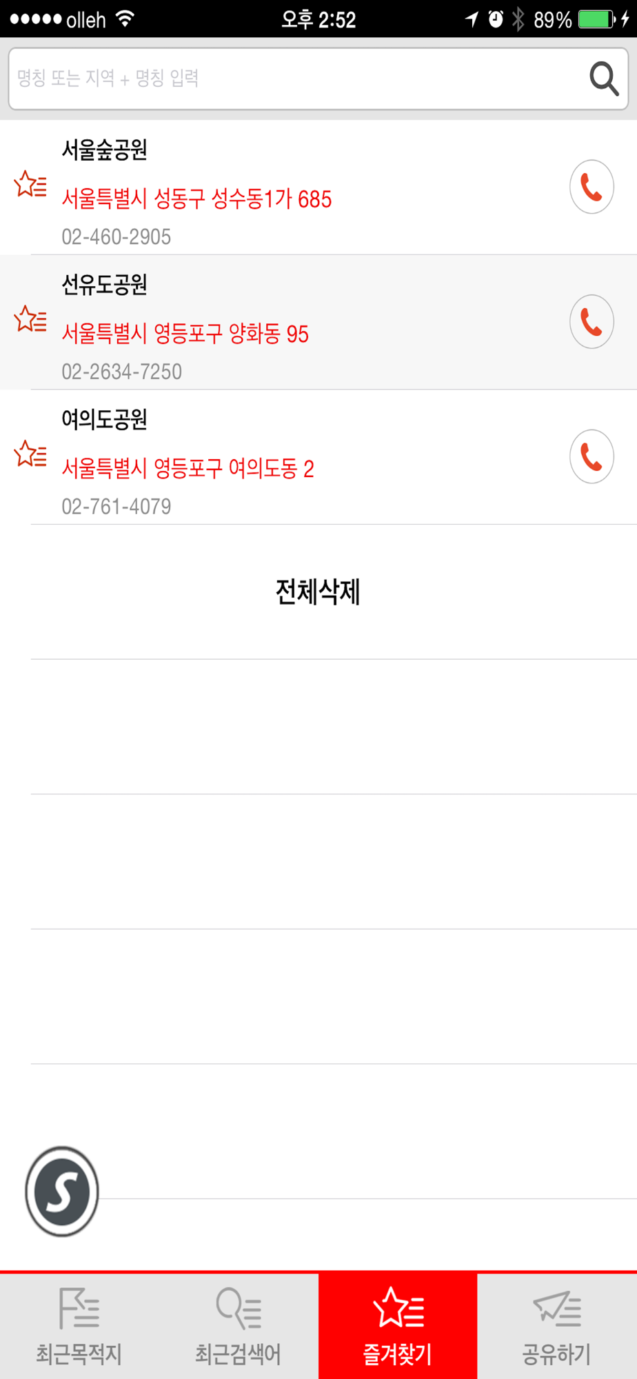 자동차에 타기 전에 스마트폰으로 목적지를 검색하고 목적지 설정을 끝낼 수 있습니다. 시동을 걸면 스마트폰에서 입력한 목적지로 자동적으로 안내를 시작합니다. 목적지 검색과 입력을 위해 시동을 걸고 내비게이션이 부팅될 때까지 기다릴 필요가 없습니다. 스마트폰으로 목적지를 검색할 때 구글의 음성 검색도 사용할 수 있어 편리함을 더했습니다. 검색한 목적지는 스마트폰과 차량 내비게이션 양쪽에 저장되고 즐겨찾기로 등록도 가능합니다.