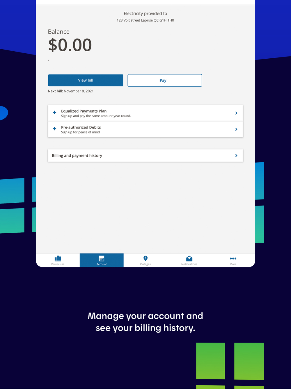 To take full advantage of our app’s features, make sure you have the latest version of iOS. Download Hydro-Québec’s free app today and save time!