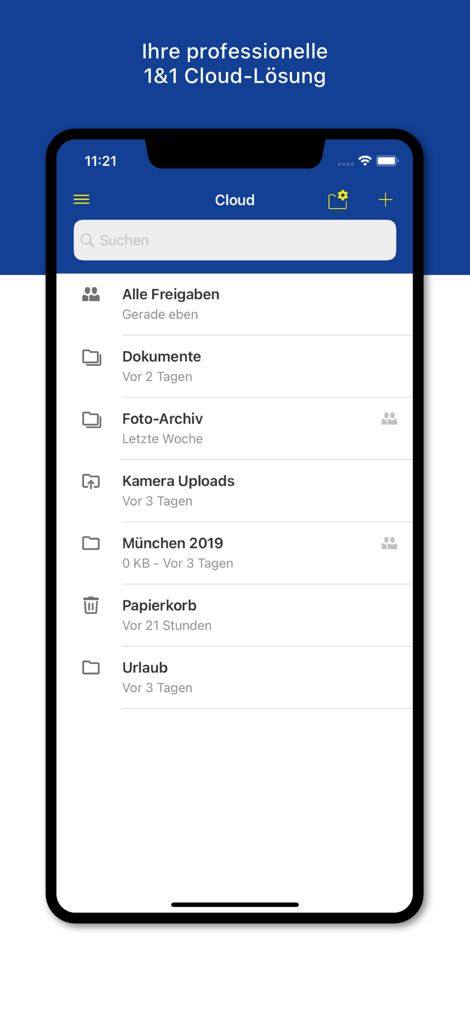 Die sichere Cloud für 1&1 Kunden mit einem mobilen oder DSL Vertrag.