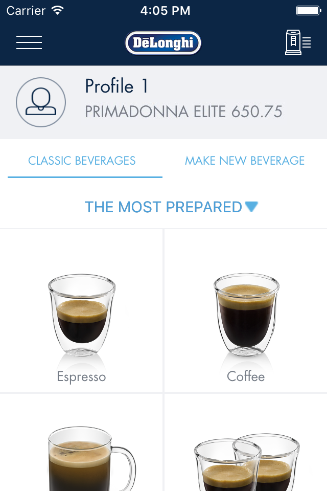 • Manage different user profiles and quickly add favorite beverages for each user