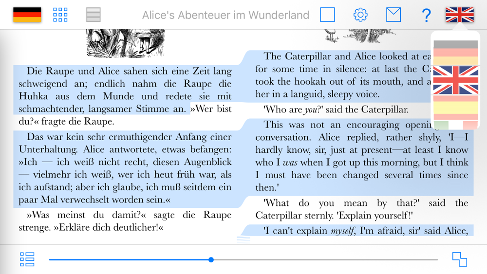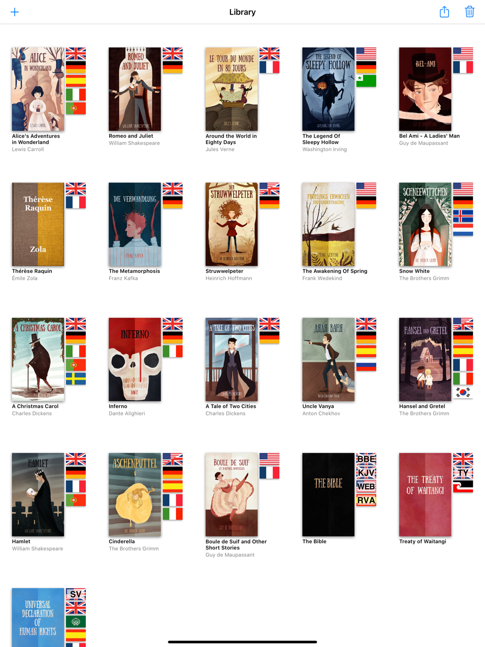 Become fluent in a new language. Read a book in your new tongue while having a parallel copy in your native language handy for reference. Now thanks to Parallel Books, this technique is available on iPad, iPhone and iPod touch. Translations will automatically stay in sync, leaving you free to be immersed in the words on the page. Reading a book in two different languages at the same time has never been easier!