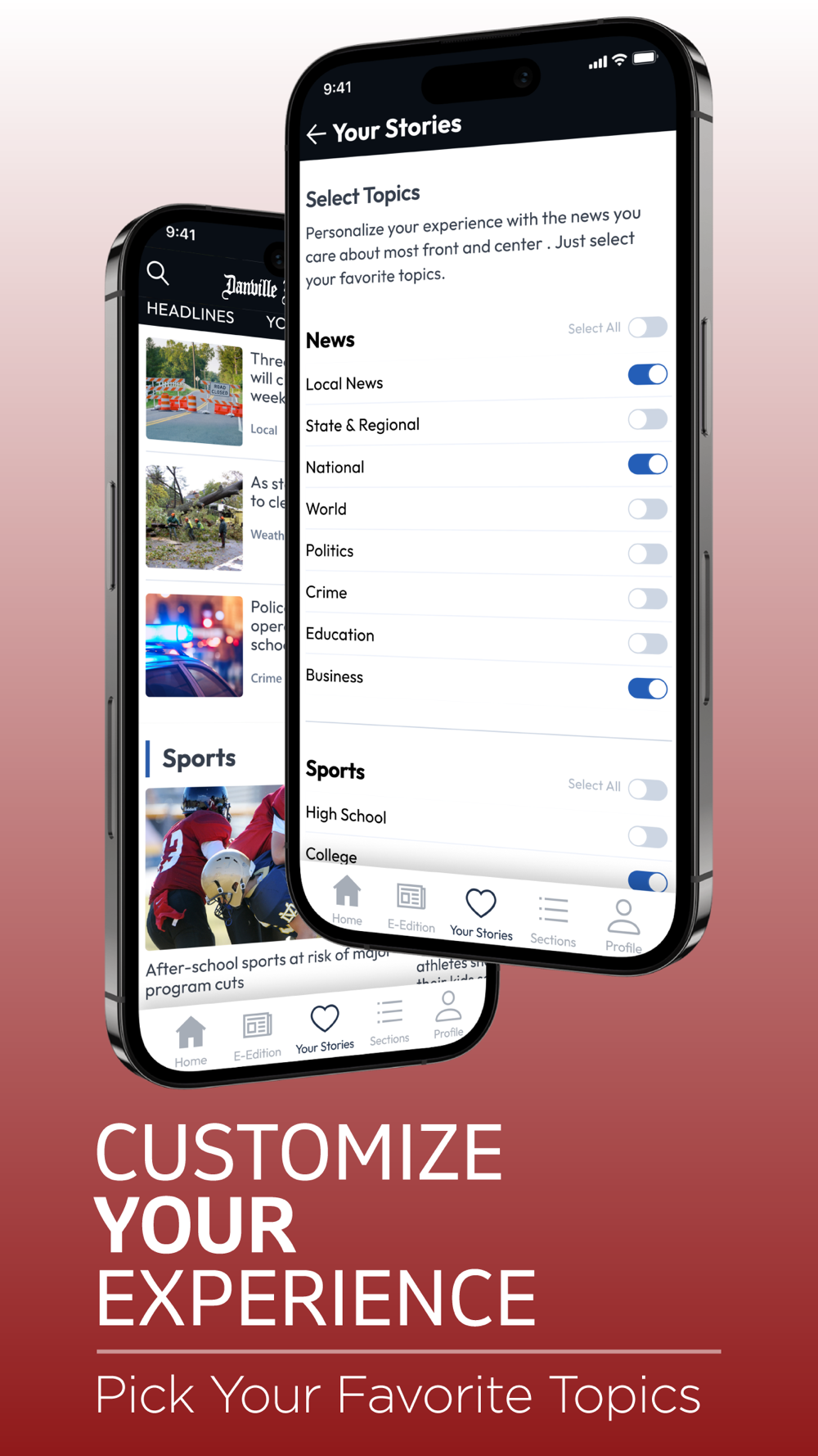 * Your Stories – personalize your experience by selecting the local news topics that matter most to you