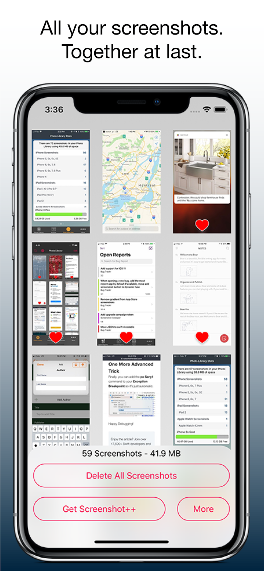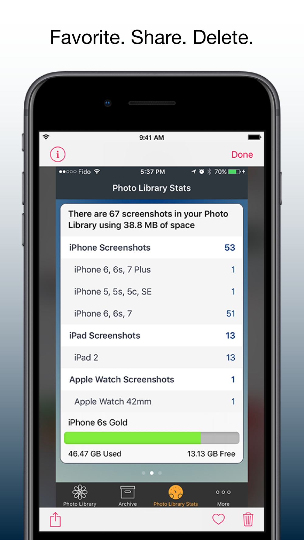 For screenshots you love, share and favourite them right from within the app! Quickly view screenshot metadata like file size, pixel dimensions, and creation date.
