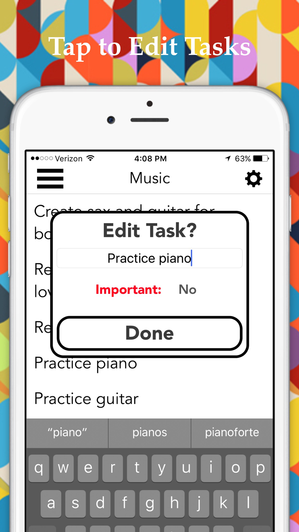 Easily create Tasks and Tasks Groups to help manage a productive life.