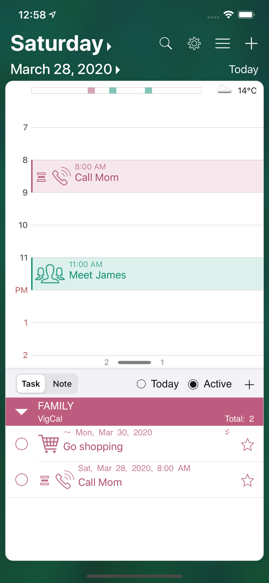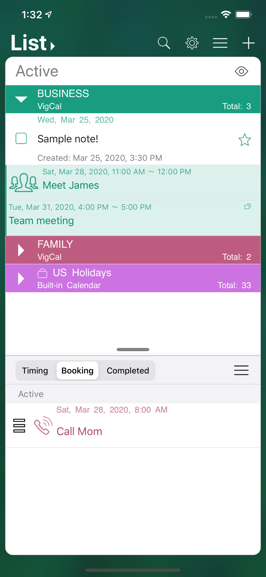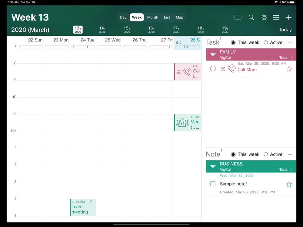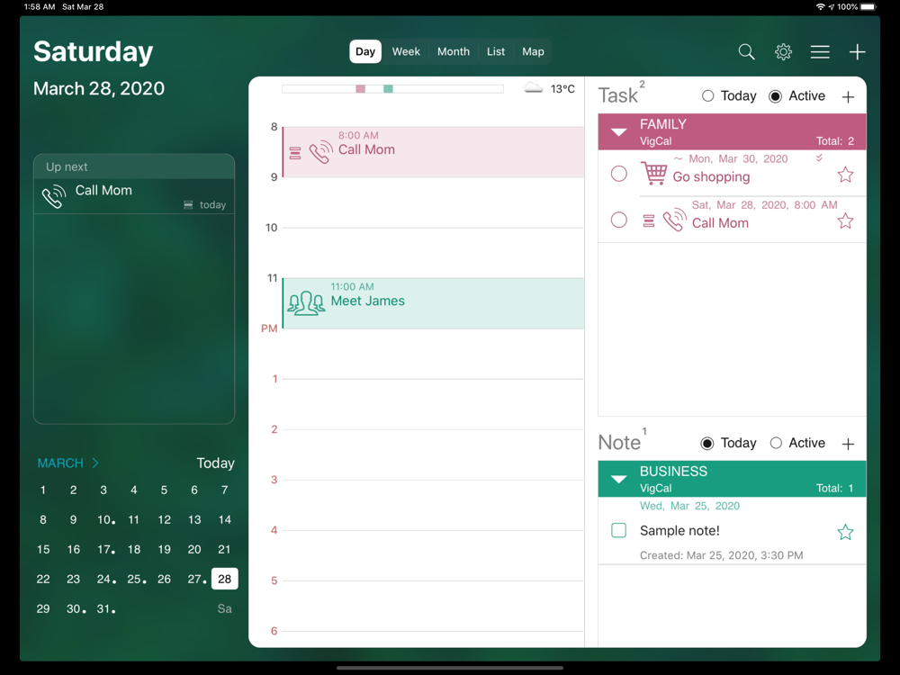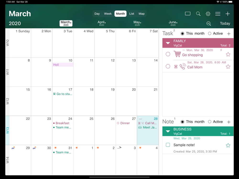• See events, tasks and notes in all views: Day, Week, Month or List.