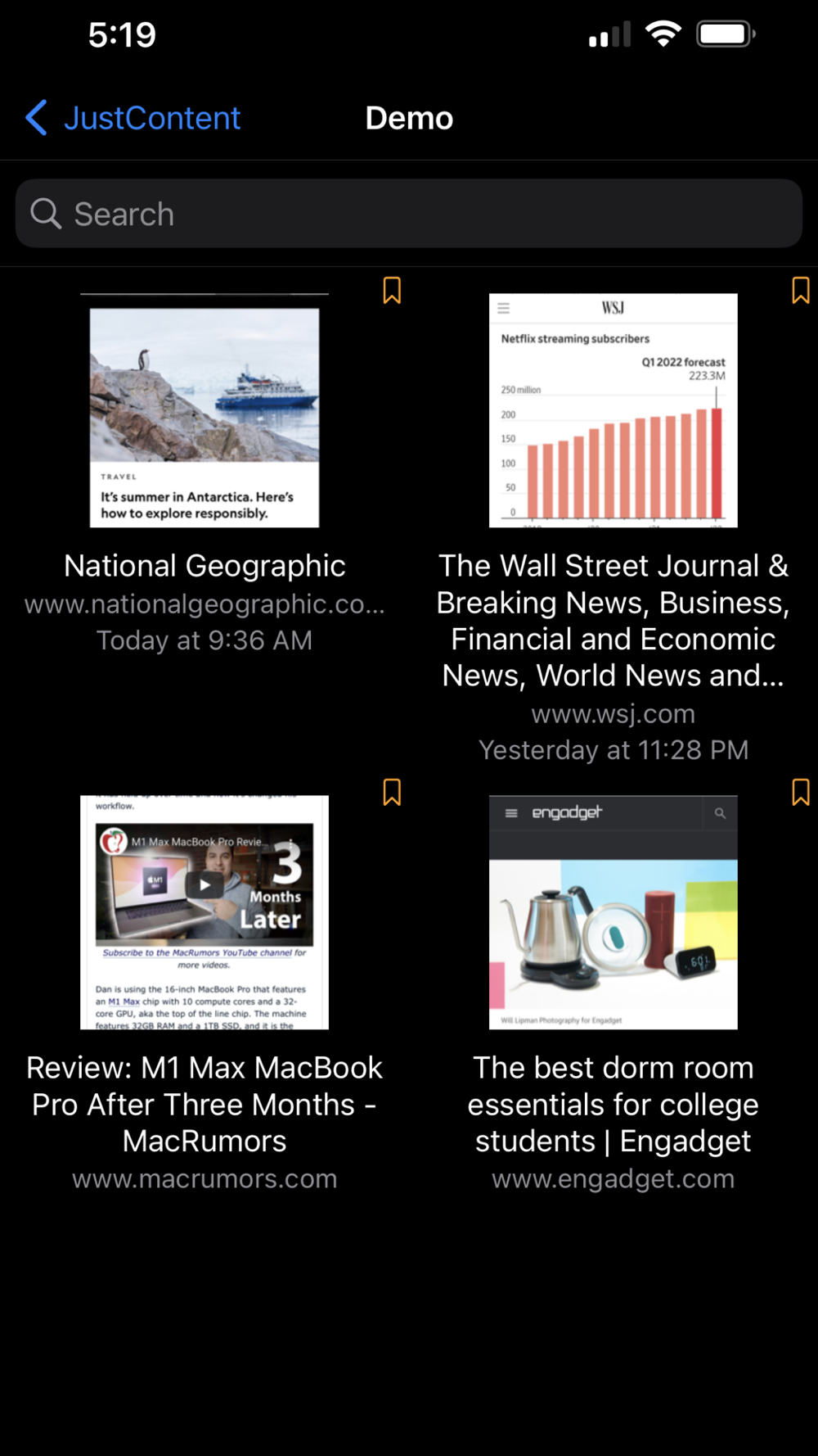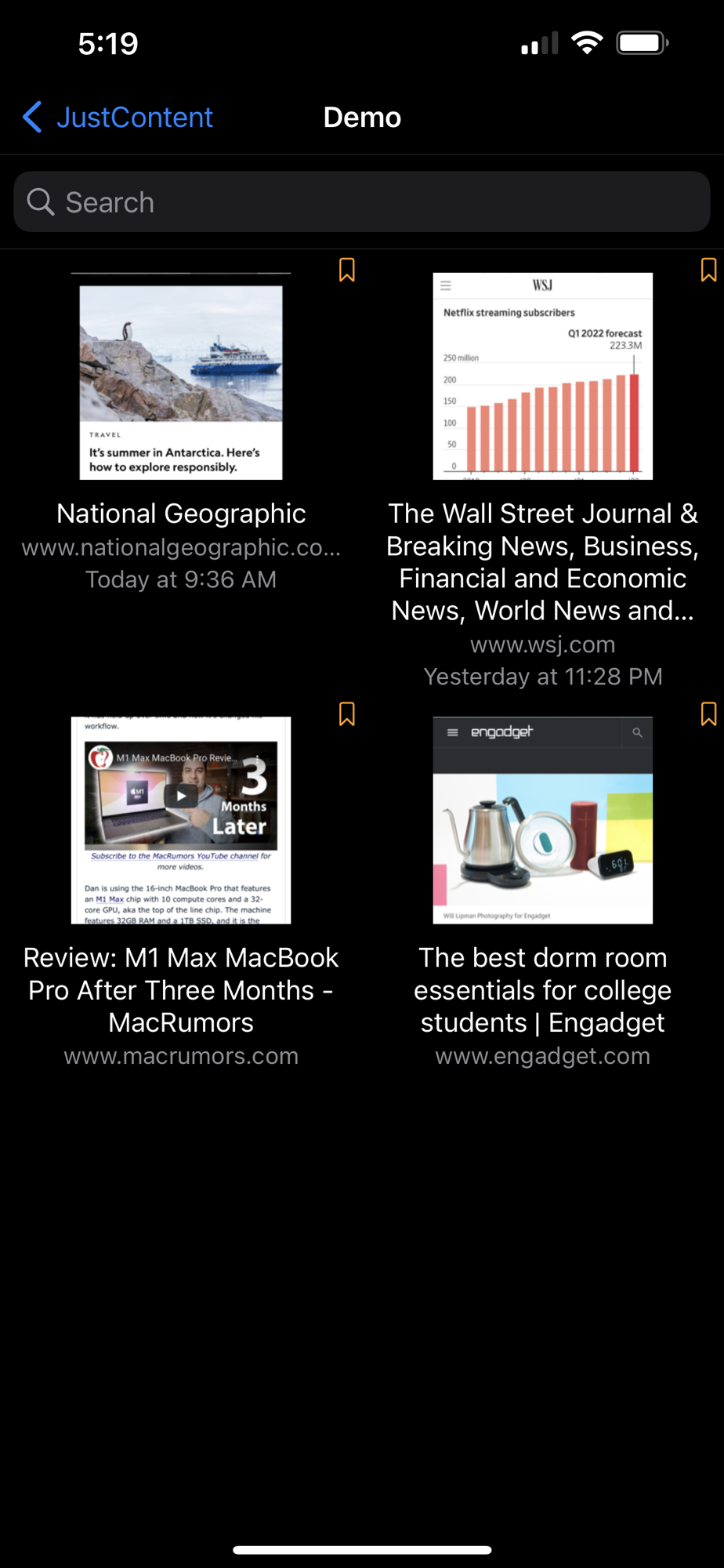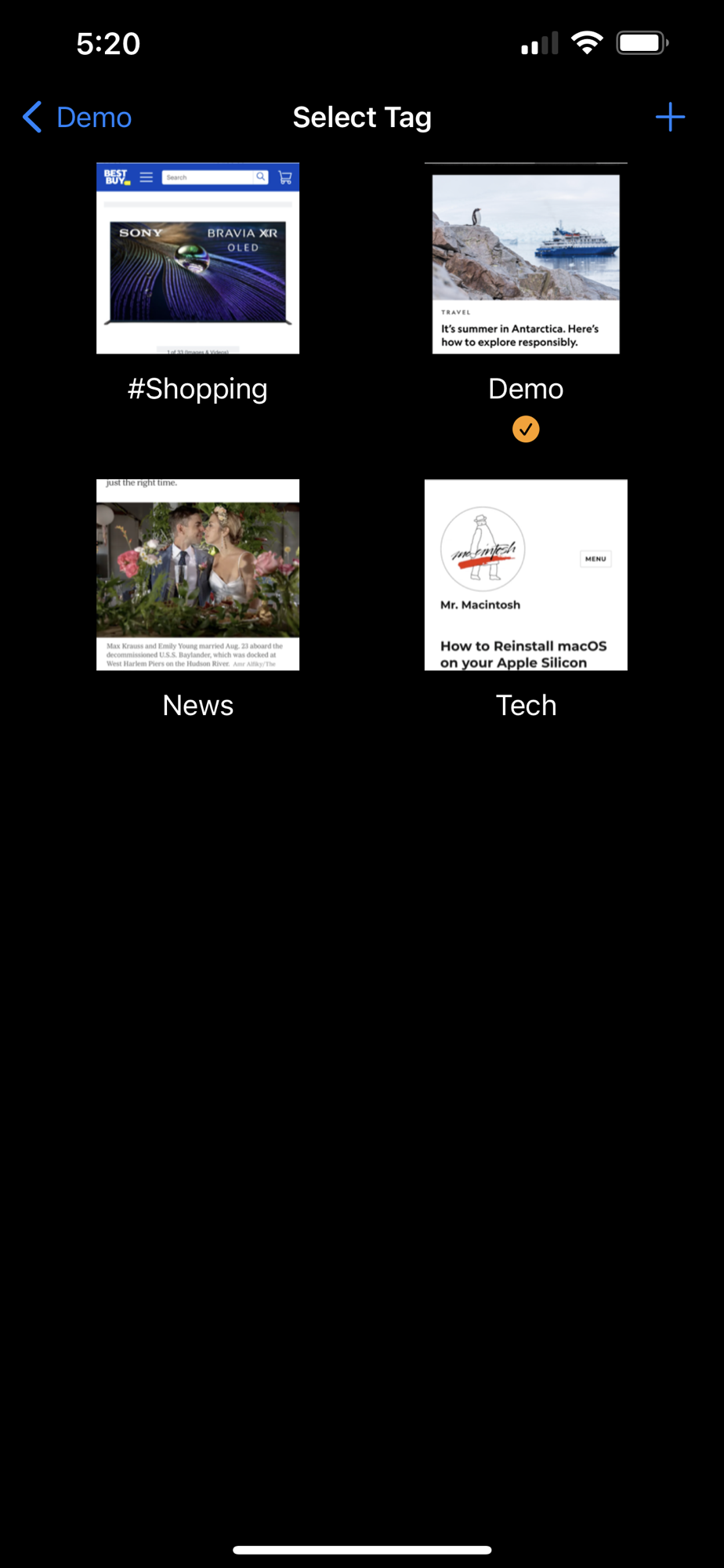 It’s a powerful bookmark manager. Bookmarks can be organized using user supplied tags. Designed to handle large collection of bookmarks and smooth scrolling. Support search by keyword. Long press on each bookmark thumbnail for related operations.