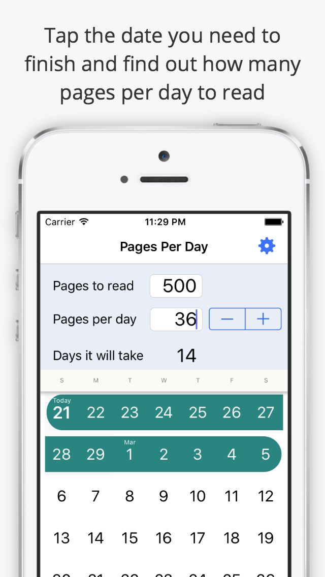 The number of pages per day you need to read is neatly displayed to help you reach your goal.