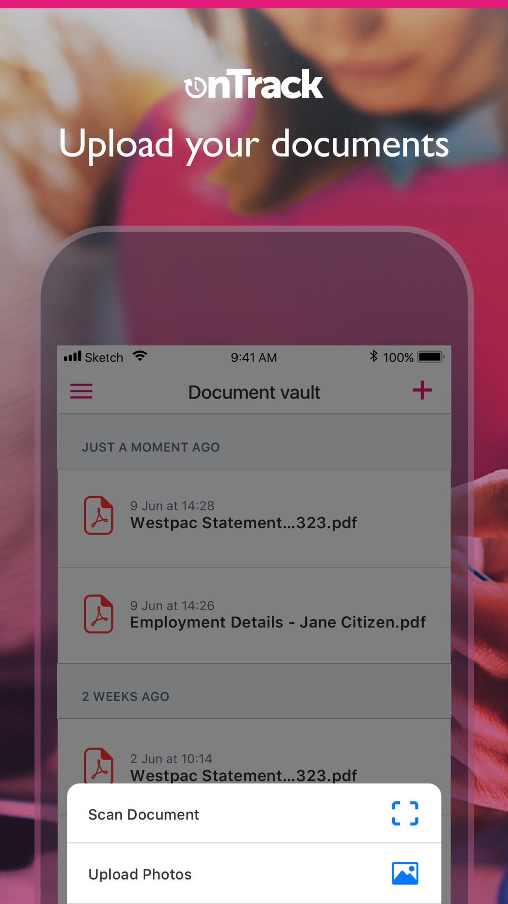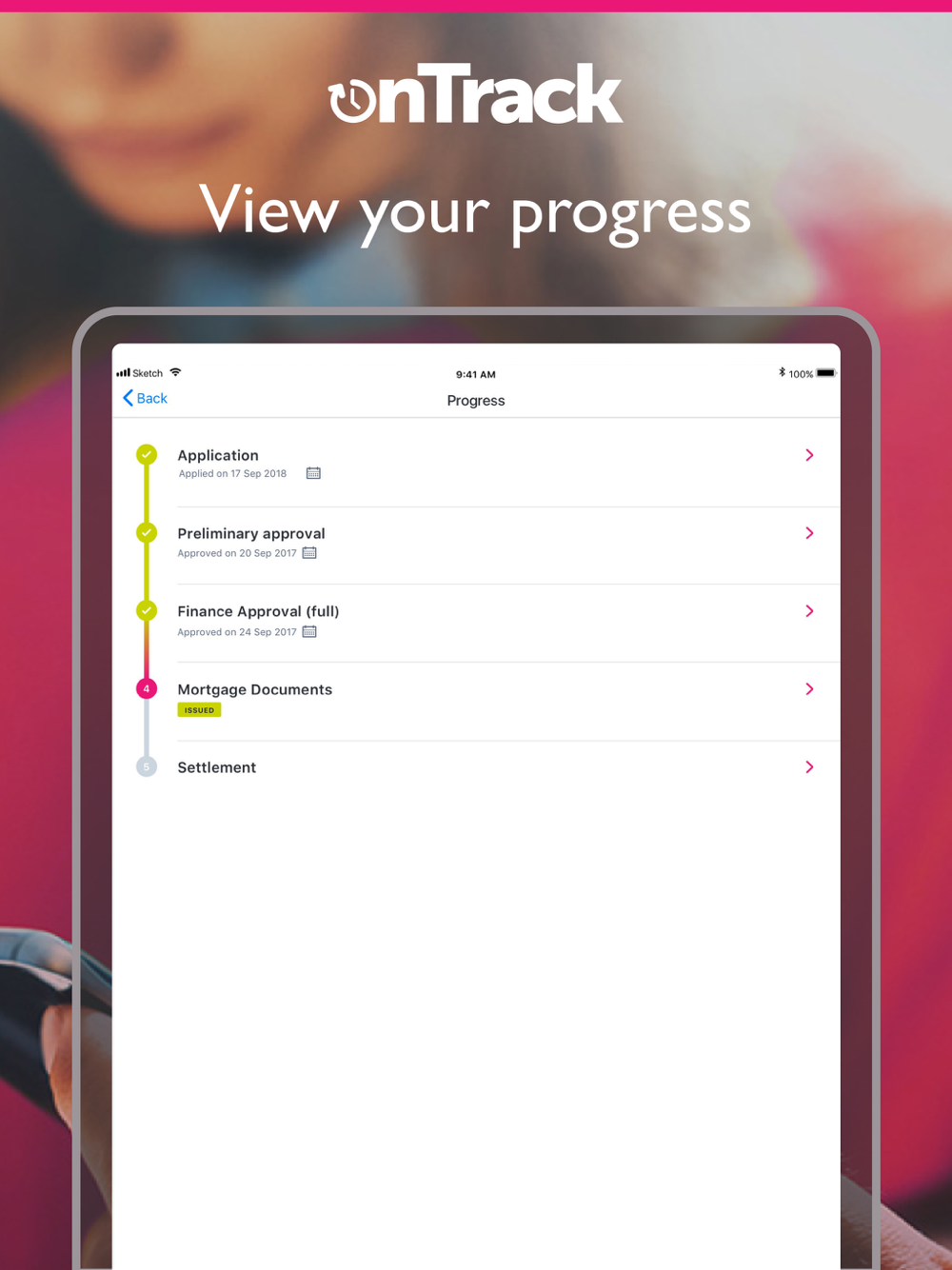onTrack enables you to book an appointment with your Lending Specialist, upload, review, and approve documents, receive notifications of milestones and track the progress of your home loan application through to approval and settlement.