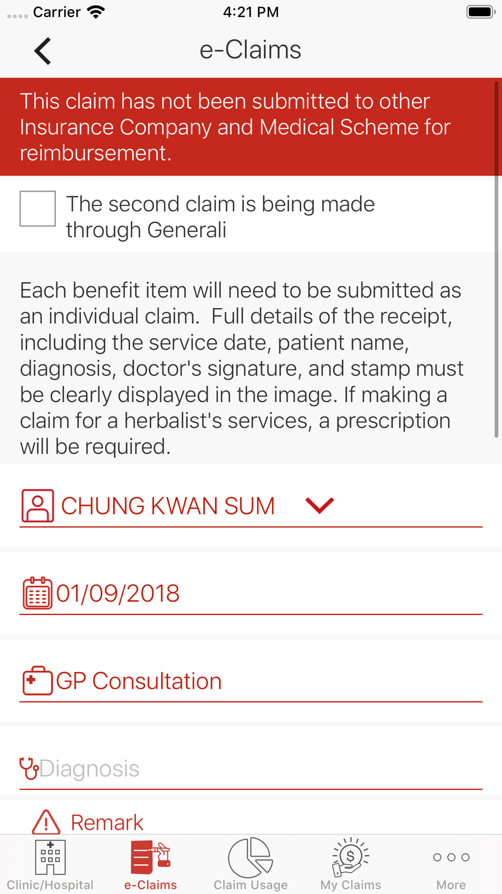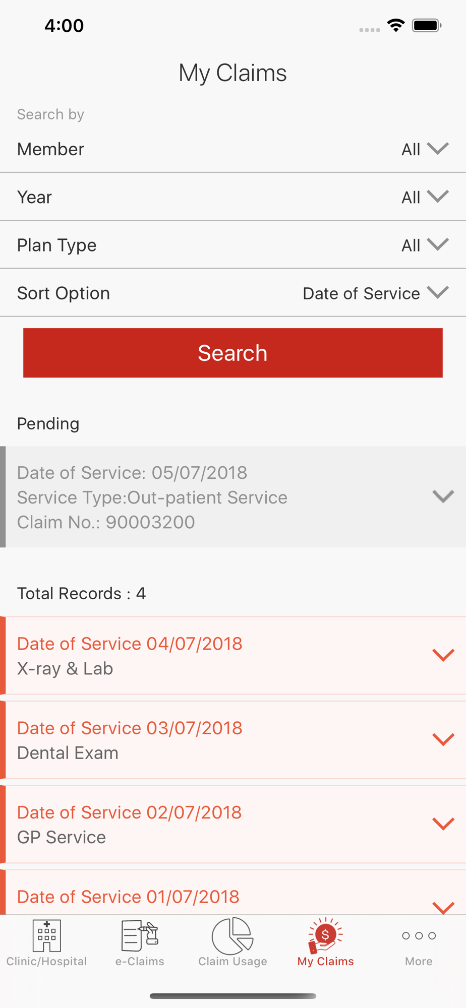 - Claims usage to show the outpatient benefit you are entitled and you have used**