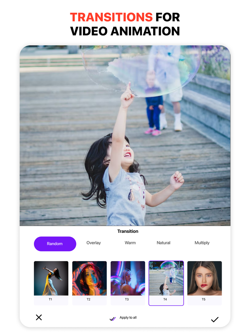 Unlock ALL Video Editor, Slide Show Maker, music effects, soundtracks, transitions and unlimited saves with the Premium Version. When subscribing, enjoy 3 days of free trial.
