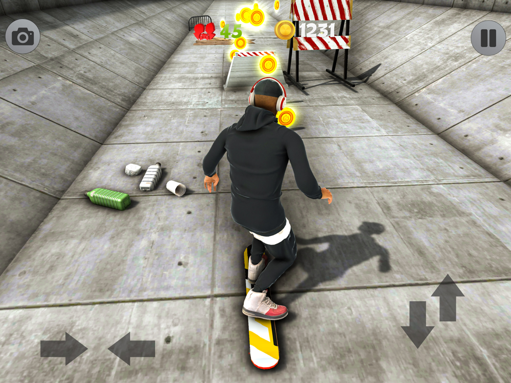- Fast paced skateboard runner gameplay
