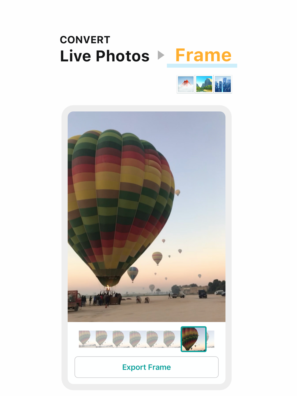 Oh, you can pick a single frame from the video part to save. Your child moves right the moment you take the shot? No worry, just grab the right frame from the video. All that, with correct metadata as the original Live Photo.