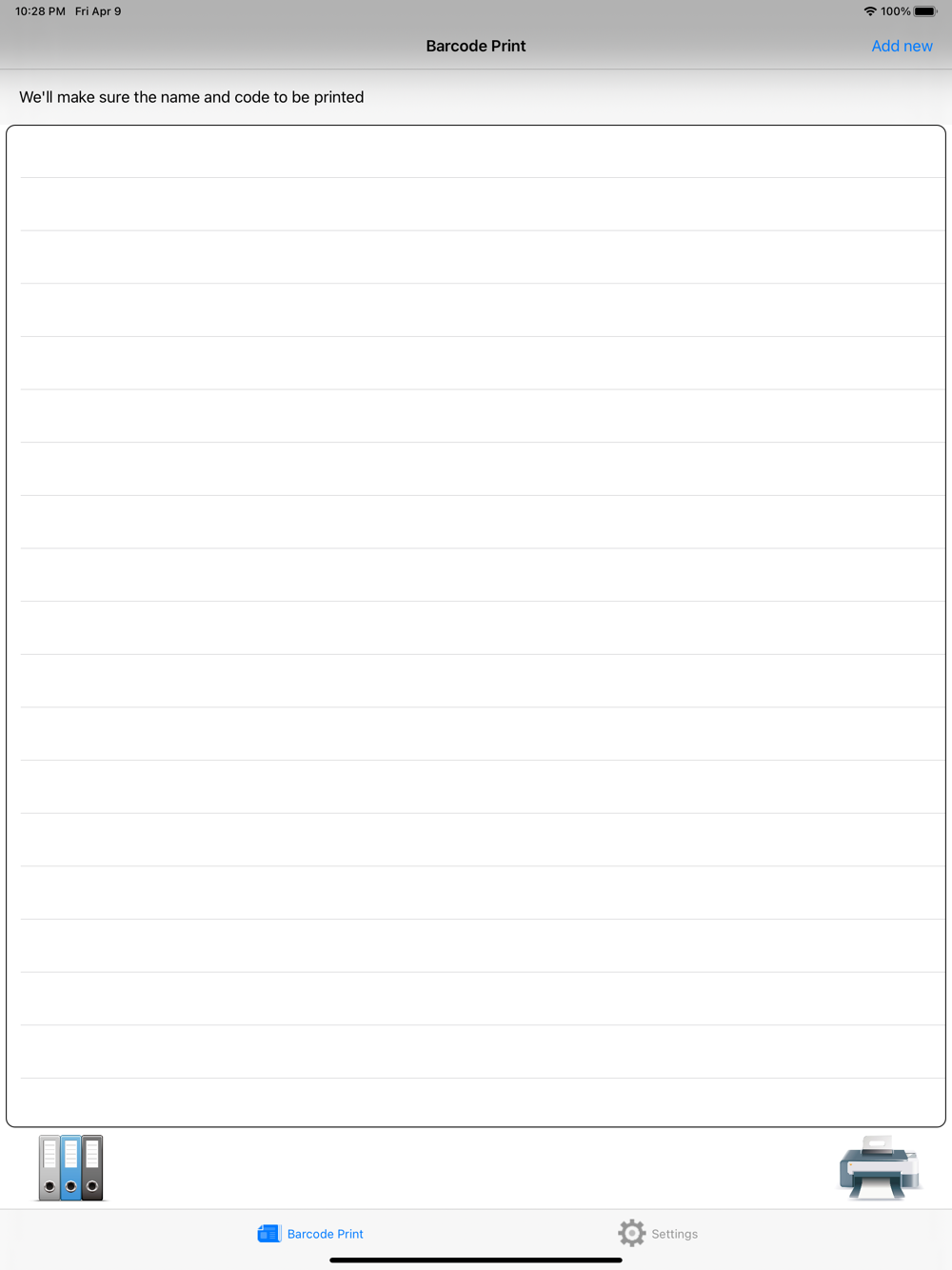 It will save the iCloudDrive and Dropbox. Then start the bar code printing, and uptake by tapping the bottom left of the file's icon.