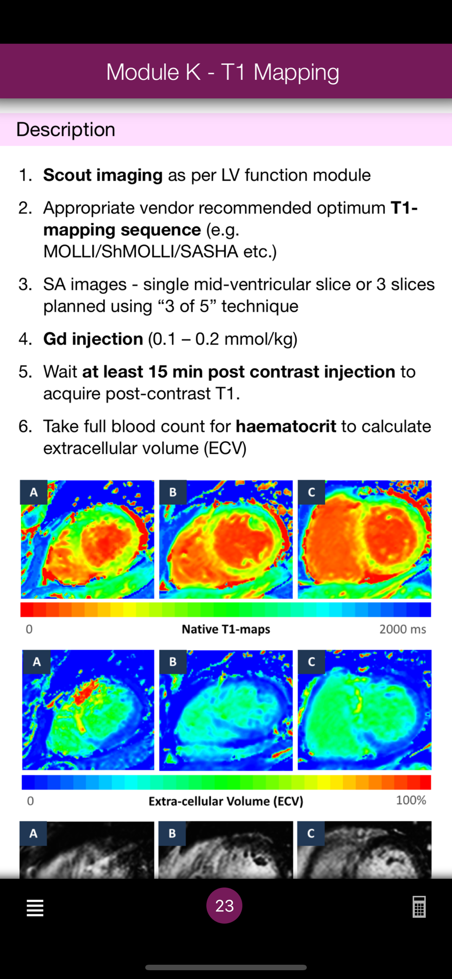 The CMR Pocket Guide App aims to provide a day-to-day companion for those new to Cardiac MR (CMR) and for those looking for a quick reference guide in routine practice.