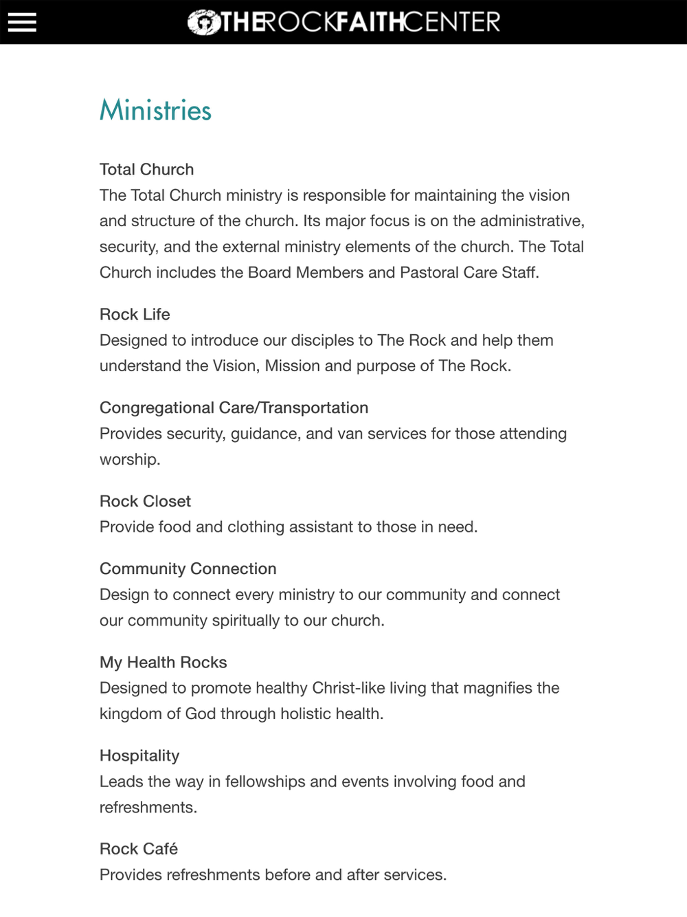 The Vision of The Rock is To be a Progressive Church that Embraces, Empowers, Encourages and Equips disciples for Christ-like living and service.