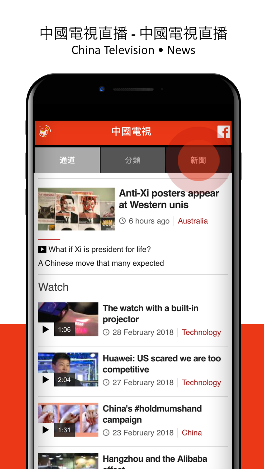 With the China TV Live - Television App you can watch your favorite series, news, documentary films, movies on your mobile device for free of charge and without registration
