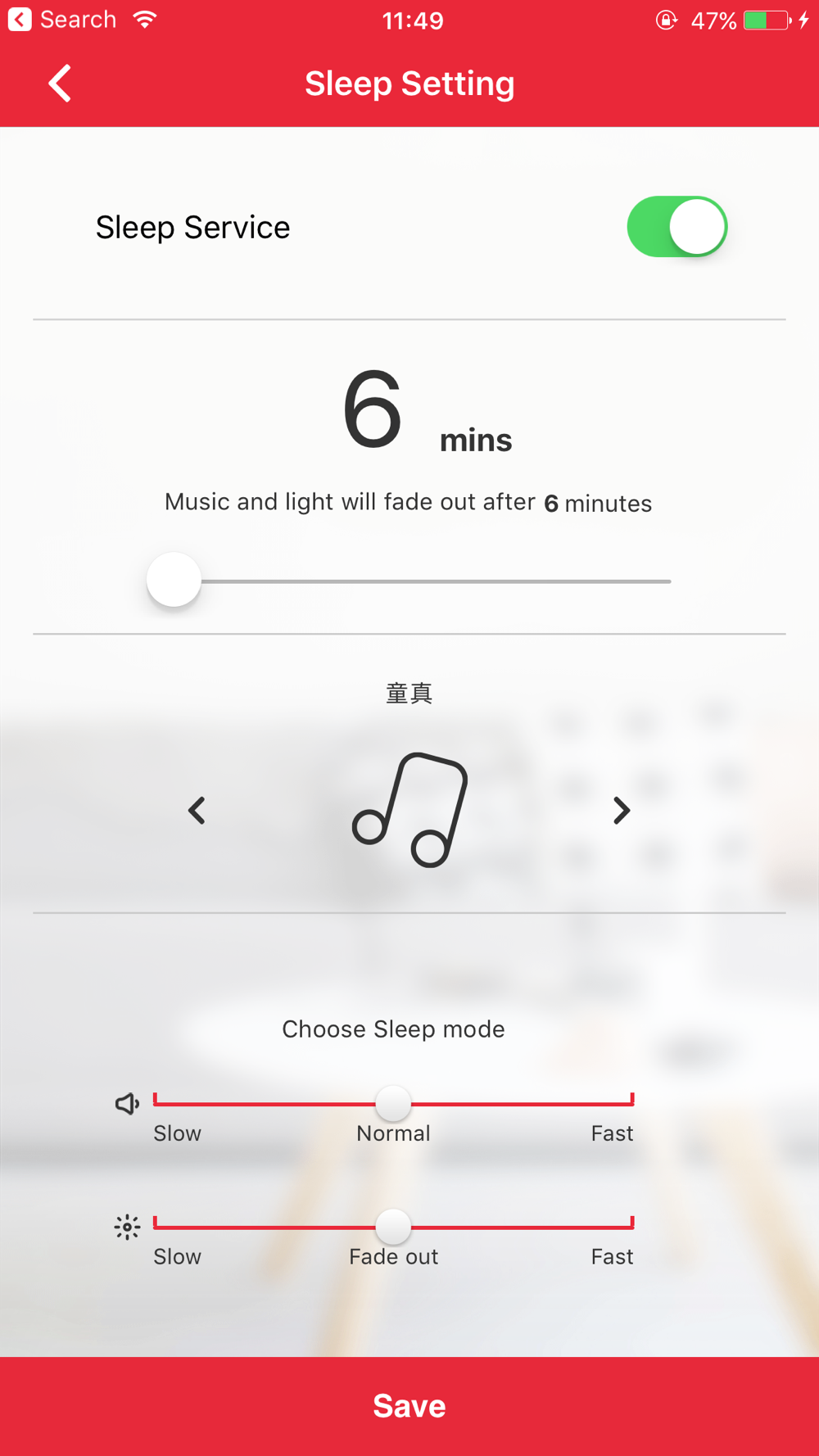 * Light, sound and music settings via the app