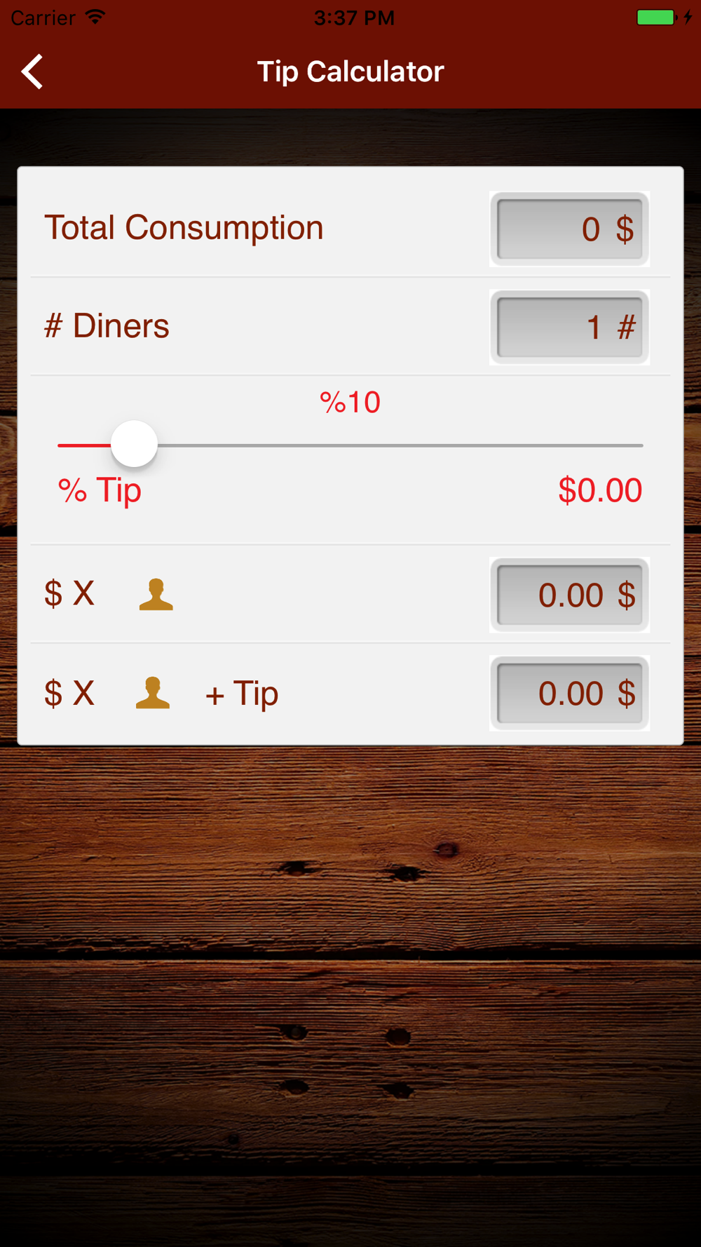 The app includes food and drinks Menu, Month Specials, Tip Calculator and QR code Rewards Program