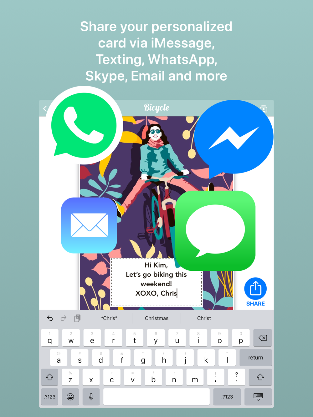 A: Yes, we recommend saving the card in your Apple Photos app camera roll and then sharing it.