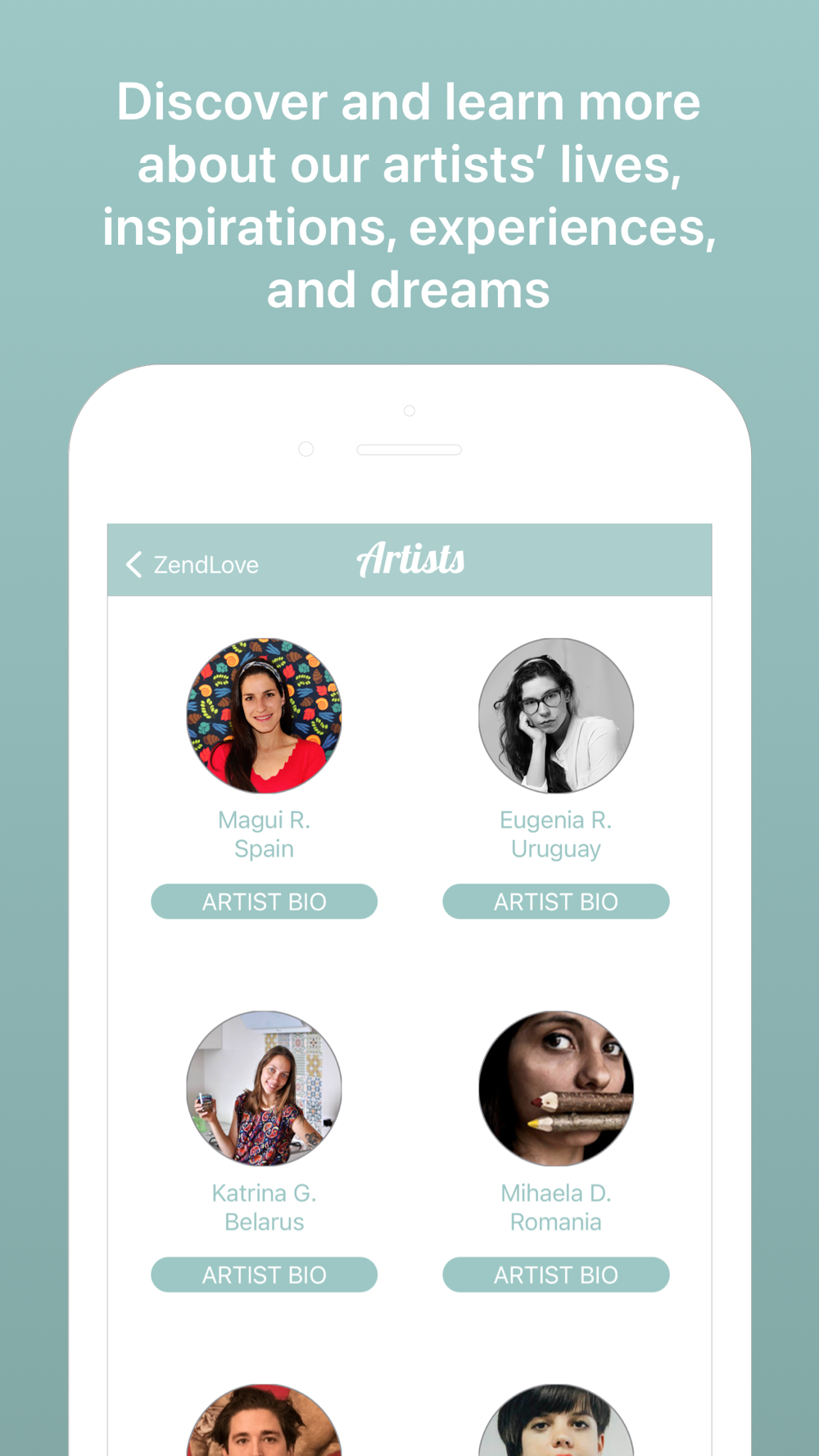 We have commissioned artists from around the world to craft beautiful greeting cards made with watercolor, paper, ink, color pencil, acrylics, mixed media, digital, and more. Our artist community is important to us, and you can get to know the artists by exploring their cards and profiles in the ZendLove app.