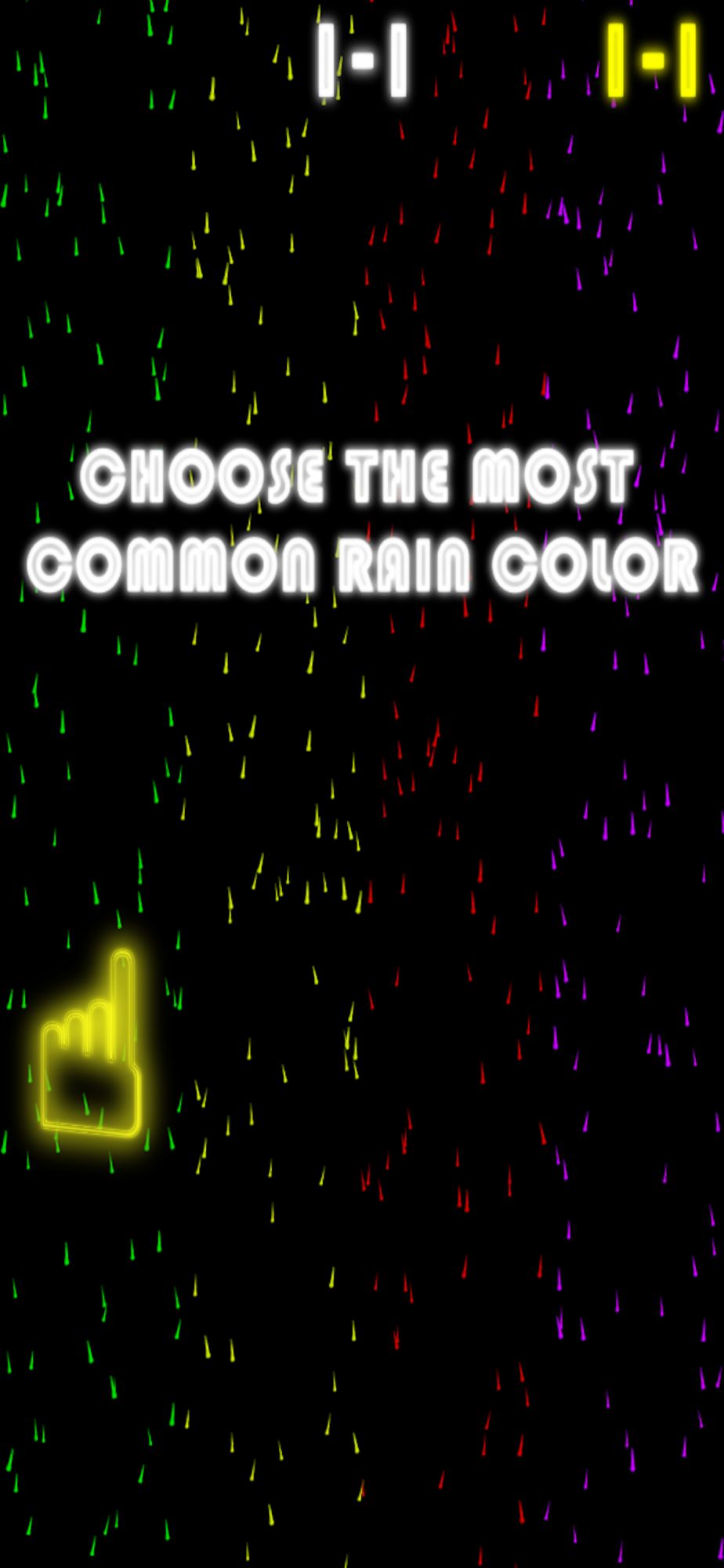 Neon Rain is the latest release from WolfWhisperApps. In this game, you will watch the colorful rain and then choose the most common color. This easy to learn but difficult to master game is a true test of perception and memory that is ideal for both long and short play.