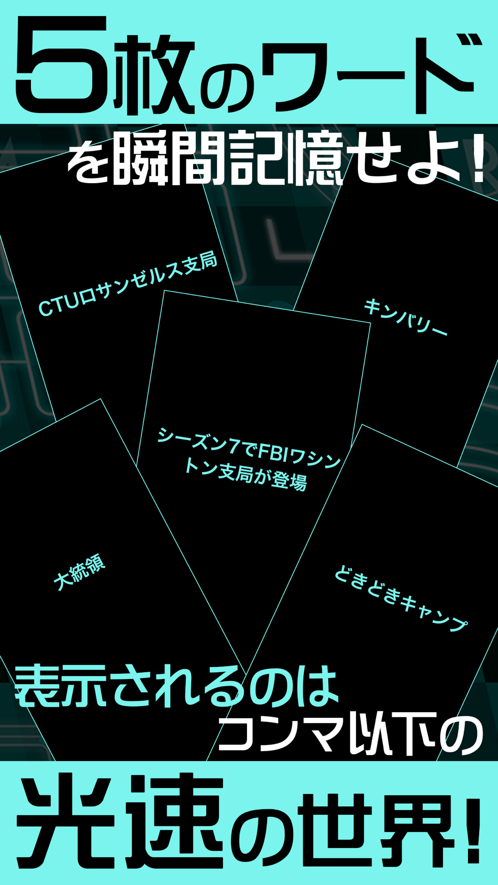 5枚のパネル(word)が光速で出ます。瞬間記憶してください。