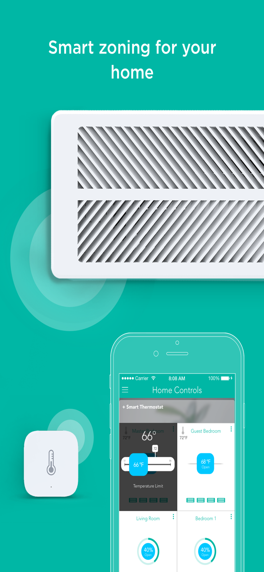 Live more comfortably and efficiently by controlling the temperature of your home room-by-room with Keen Home Zoning using Smart Vents and Temp Sensors.