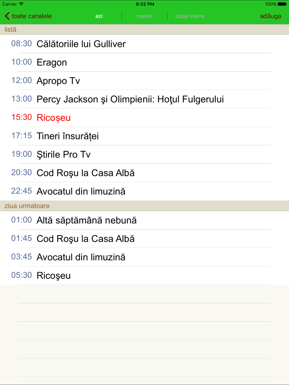 Puteti vedea lista program de fiecare canal pentru următoarele 3 zile .