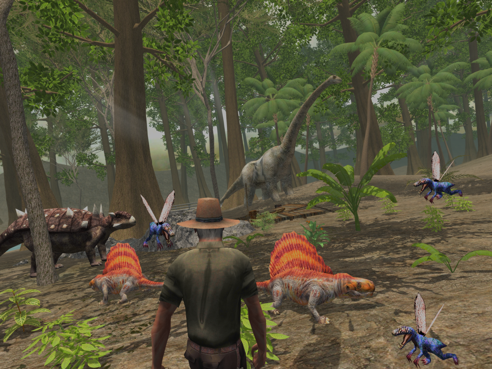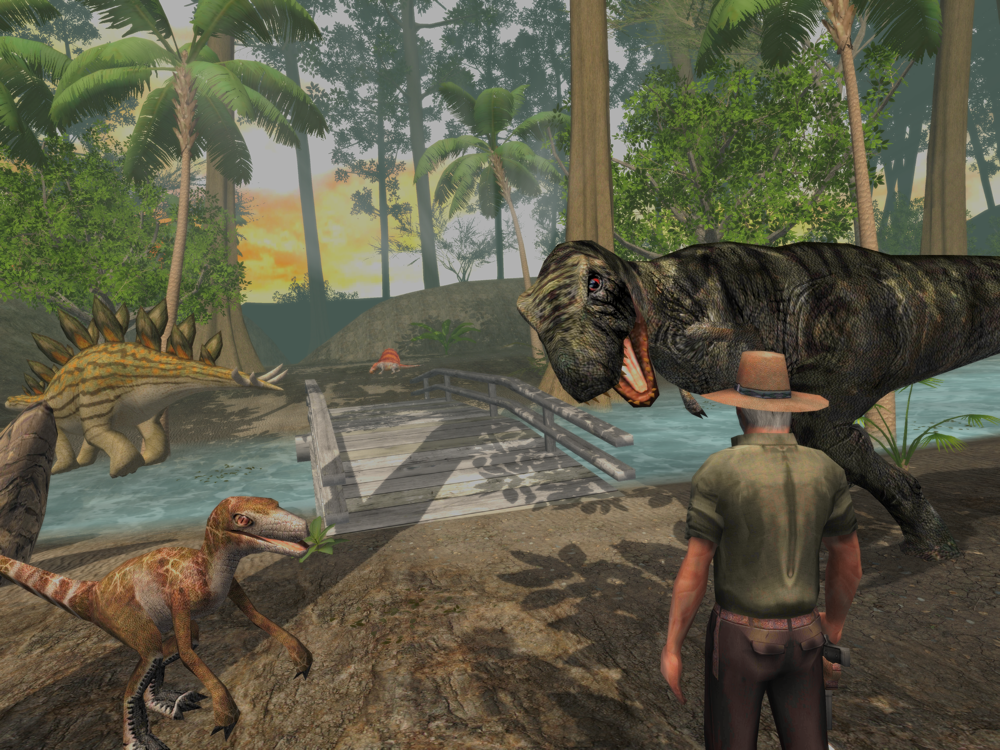 Use a vast amount of weapons to hunt by day and build a camp fire at night to keep those dangerous dino’s in sight.
