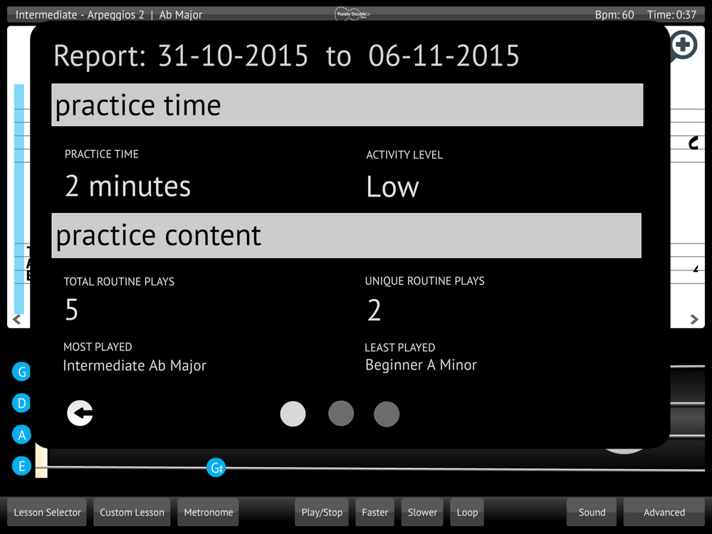 Purely Lute is designed to help you become a better lute player. By repeatedly practising the routines and lessons included in the software, your playing technique will improve over time. The advanced visual interface adds an extra dimension to your lute practice, so you can see and hear how the music plays.