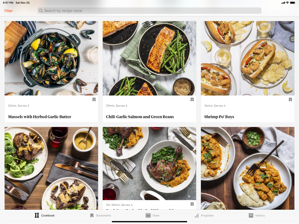 - Search for recipes by meal type, dietary restrictions, skill level and ingredients.