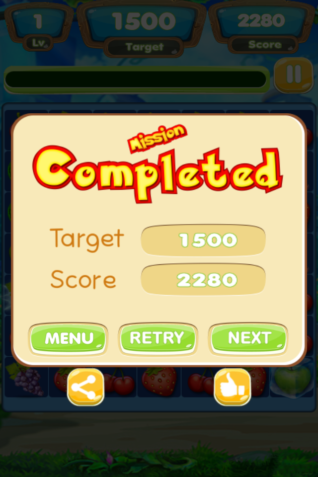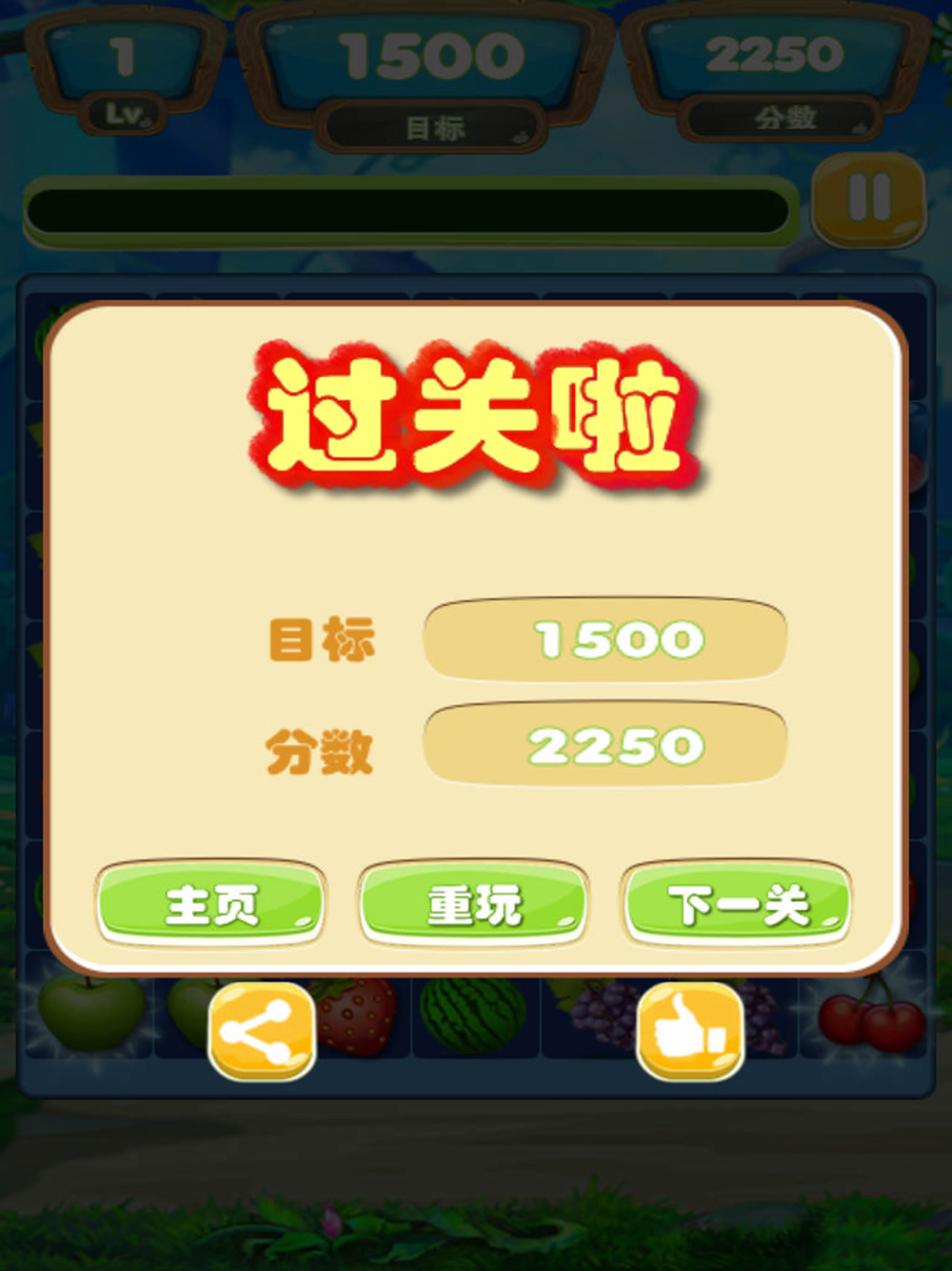 1, crossed the screen, link adjacent to the same fruit, even the higher the score.