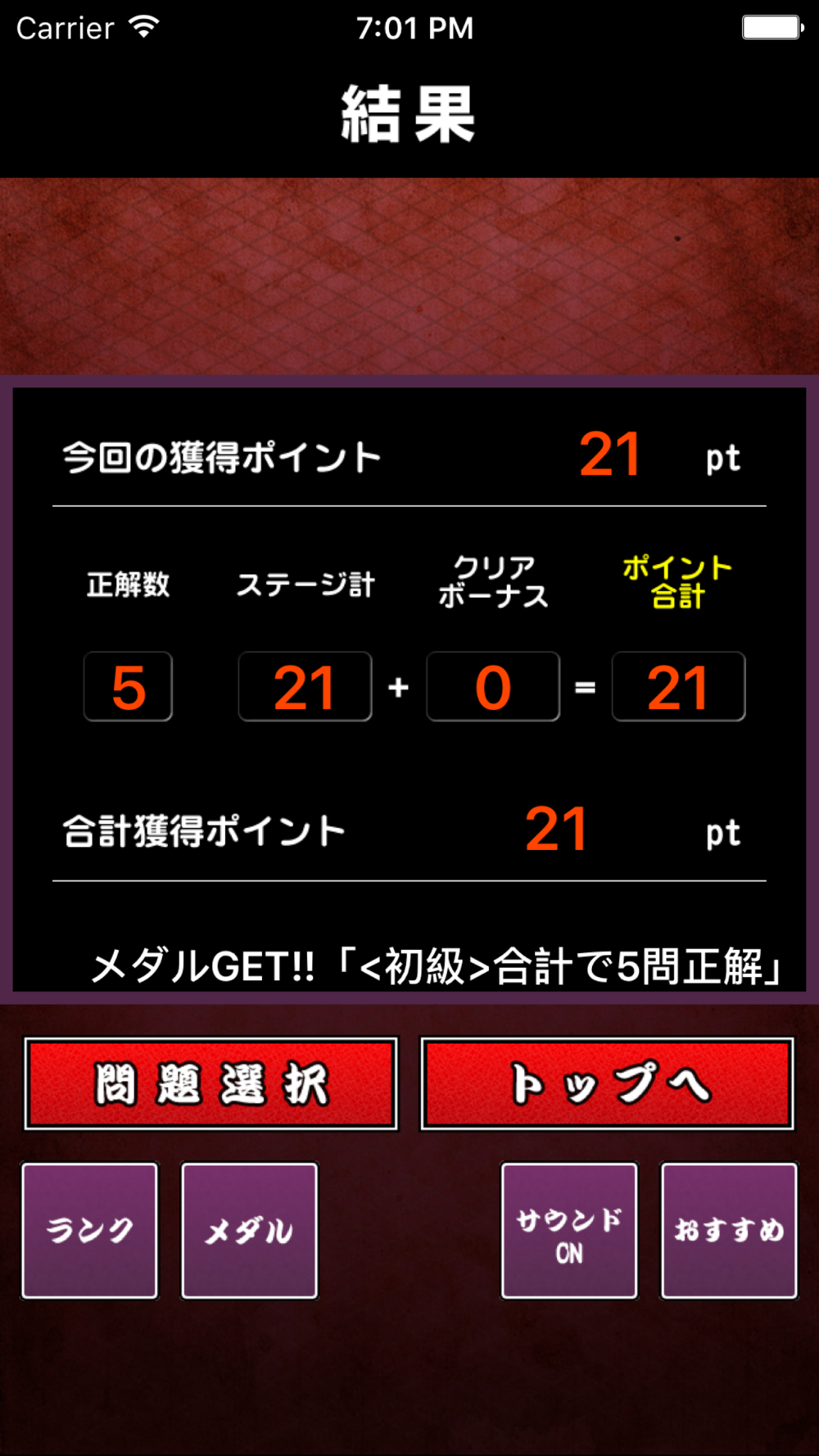 Quiz has become a fill-in-the-blank format, and has been adjusted so that the same problem is unlikely to appear. Quiz of the correct answer, because you can win medals in accordance with the respective conditions, such as all the questions domination, there is also fun to collect a medal as well as a quiz.