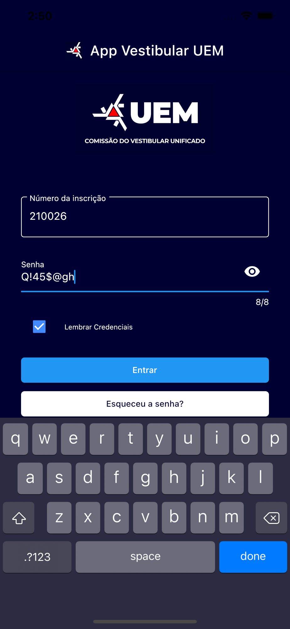 O App Vestibular UEM é um aplicativo desenvolvido pela Comissão do Vestibular Unificado (CVU) da Universidade Estadual de Maringá (UEM). A partir da instalação, o usuário poderá acompanhar o processo de efetivação da inscrição nos concursos vestibulares ou processos de Avaliação Seriada (PAS). Também poderá conferir a concorrência do curso escolhido ou mesmo copiar a linha digitável do boleto para pagamento da taxa de inscrição. Outra importante funcionalidade é o sistema de notificações. O usuário poderá receber notificações sobre os prazos de inscrição do evento, sobre a data limite de pagamento da taxa de inscrição, e mensagens informando sobre a homologação de sua inscrição. Além disso, o candidato terá a opção de consultar o cartão de desempenho em cada prova, ver a imagem digitalizada da prova de redação e conferir onde prestará o concurso, podendo inclusive abrir o mapa do local de exames. Quando o resultado do concurso for publicado, em caso da aprovação do candidato, ele poderá receber a boa notícia por meio de uma mensagem de notificação push.