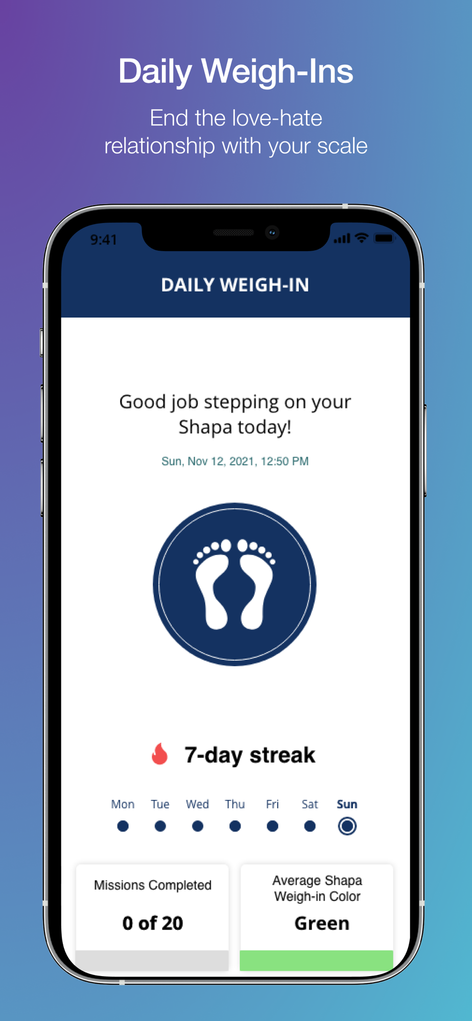 Shapa Streak: Keep your weigh-in streak alive every time you step on the Shapa.