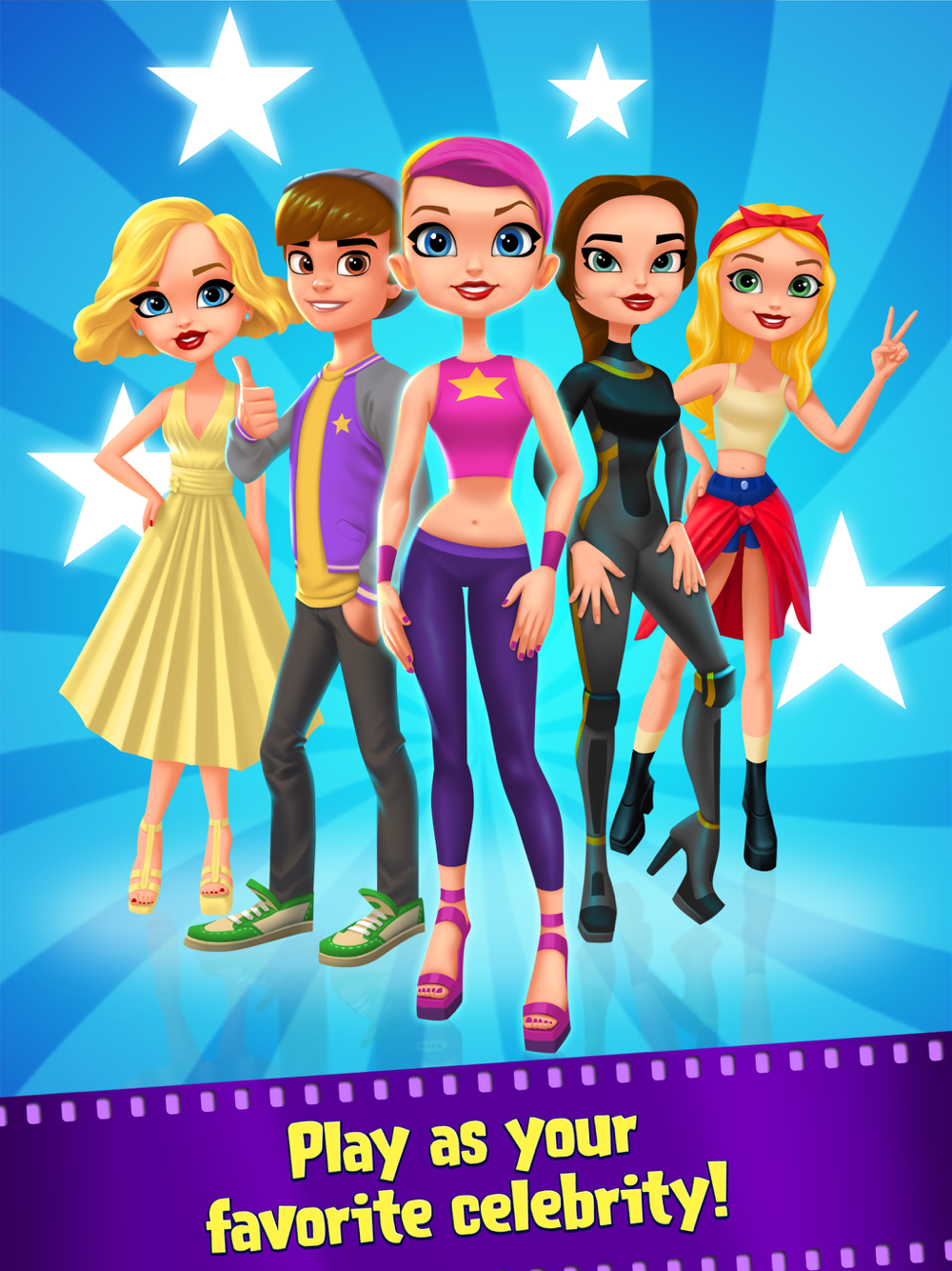 > Choose from 10 celebrity characters each with their own unique, red carpet style!