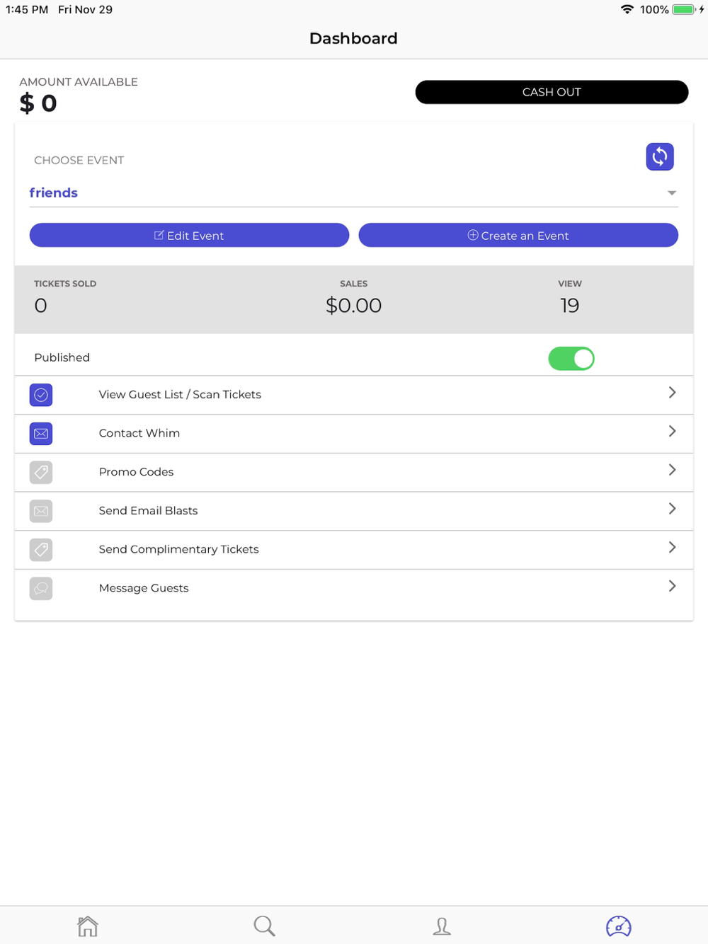 Unlike other event discovery apps, where you never see the kind of events you want, Whim curates events so that is no longer a problem. Not a Whim event, No problem. We just want you to win so we have a variety events for you to choose from regardless of if they are hosted by us. Filter your selection based on your favorite categories (Day parties, After work happy hours, Professional events, Conference and much more). Easily decide what location you want and be on your way.
