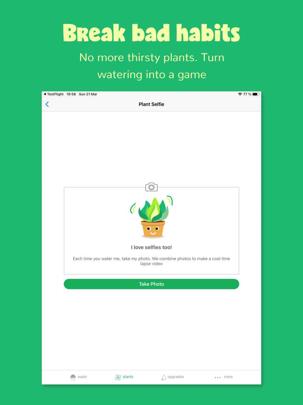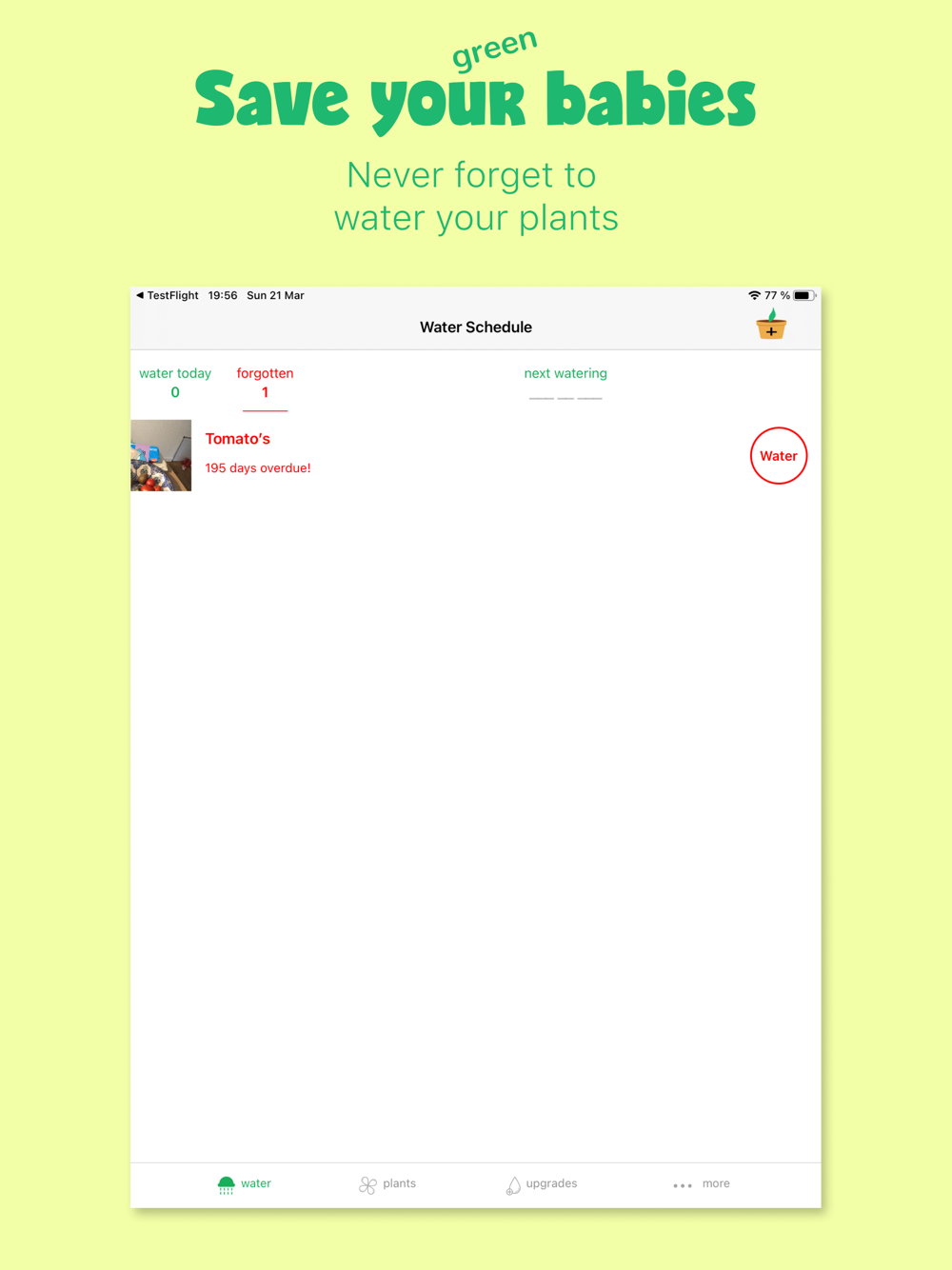 - Customize your plants (your babies) by giving each a name and taking plant selfies.