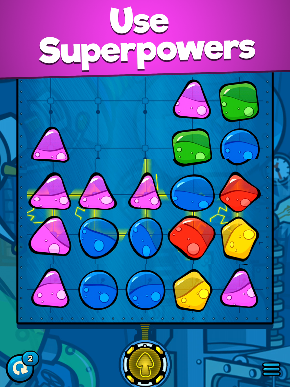 Get challenged in an amazing world of over 150 handcrafted levels giving you the chance to extend your smart play with the use of the unique Super Sonic Bubble Powers. Extraordinary laboratory environments, heroes with special super powers, lots of sweet colorful bubbles full of delicious and mysterious fruit juice.