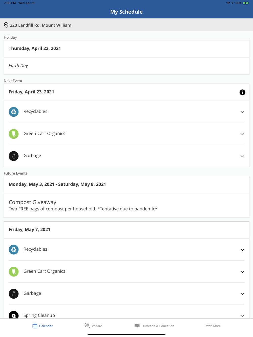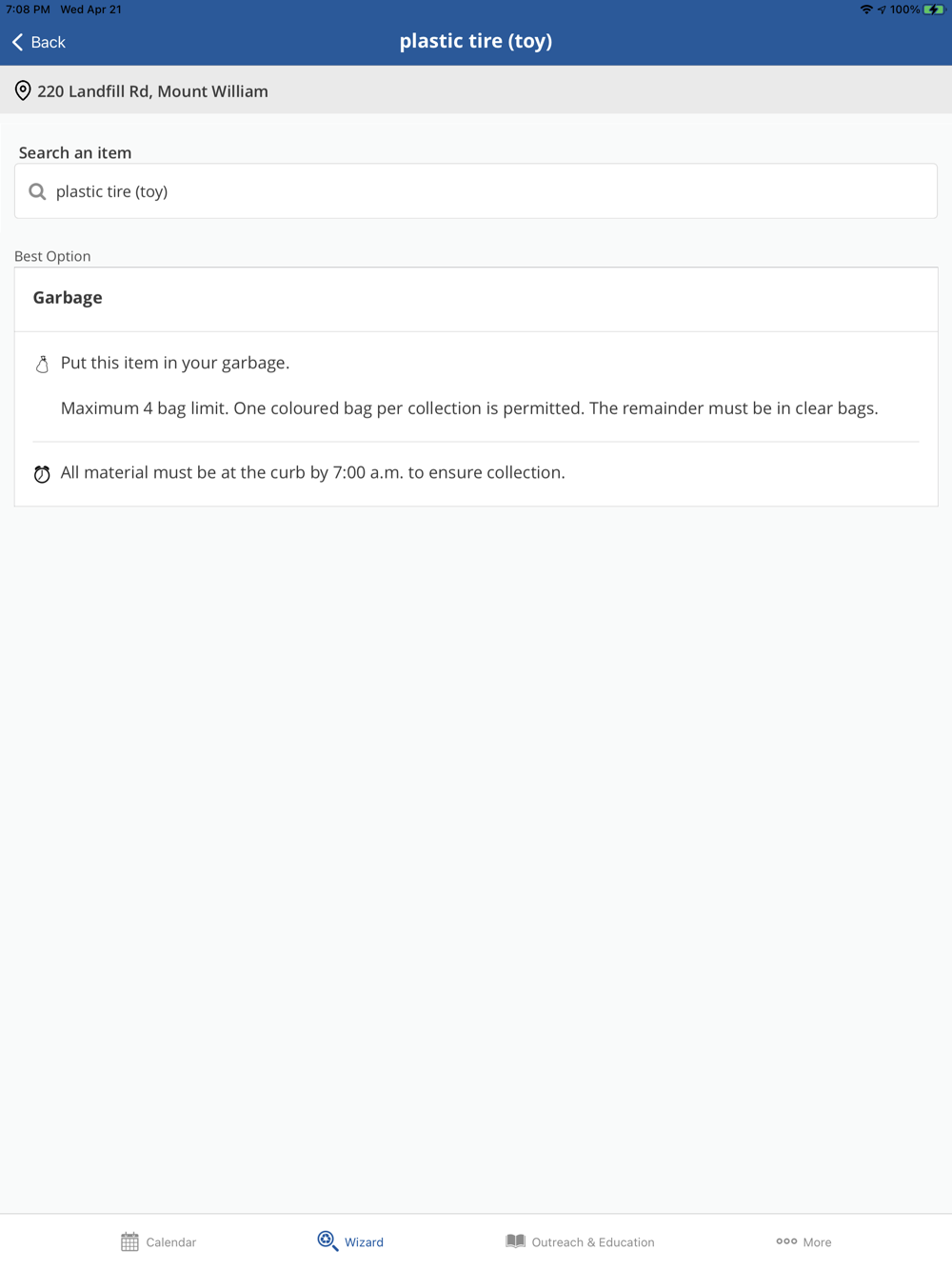 Need some help figuring out what goes where? Check out the Waste Wizard feature! Simply type in an item and the waste wizard will let you know where it goes.