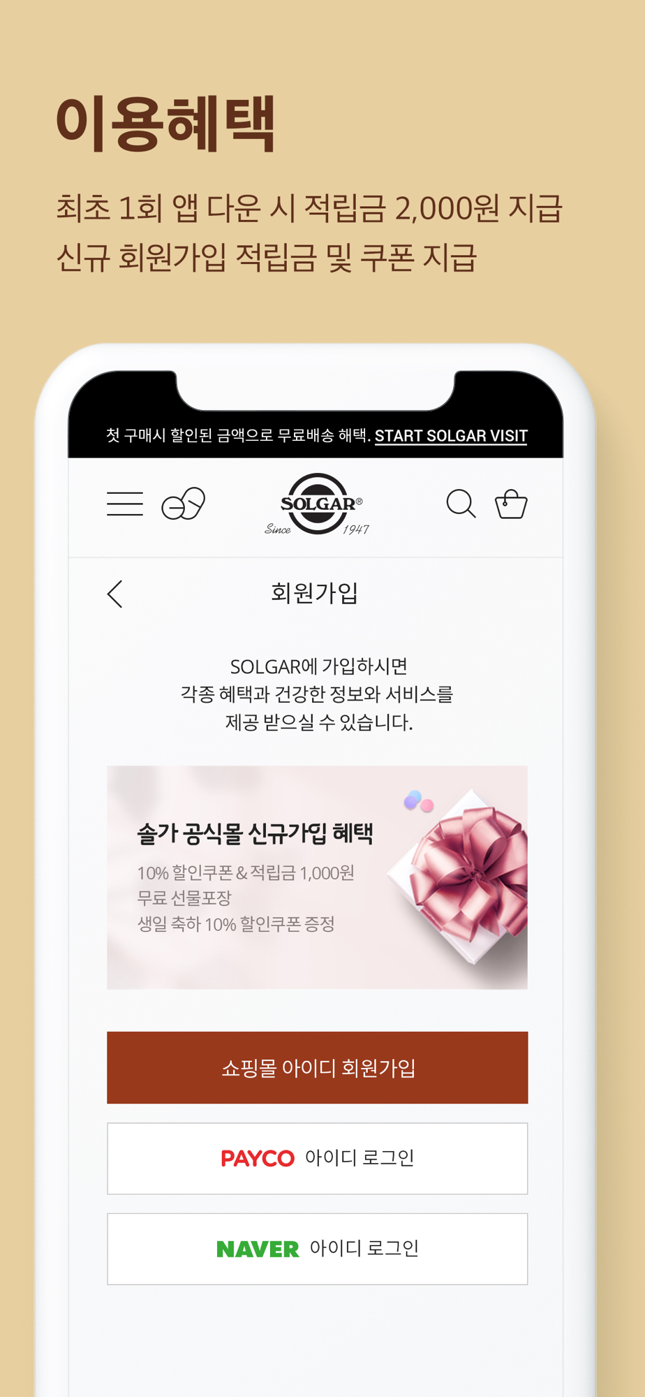 - 최초 1회 앱 다운 시 적립금 2,000원 지급