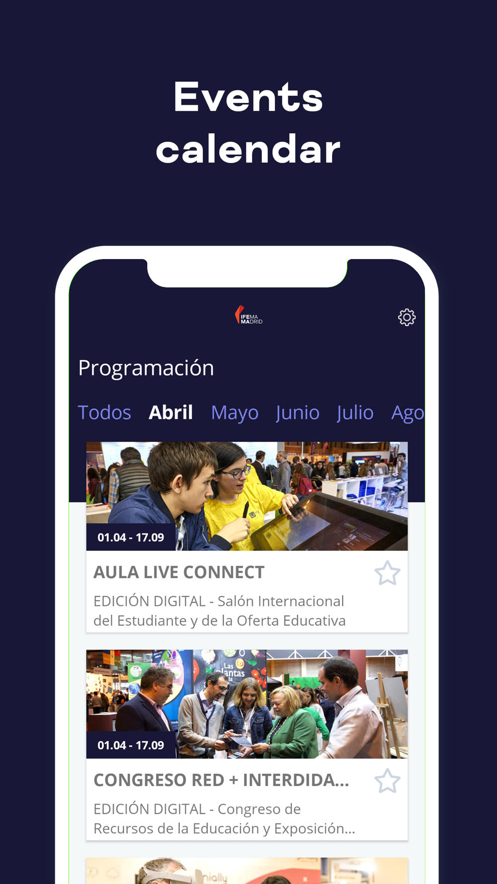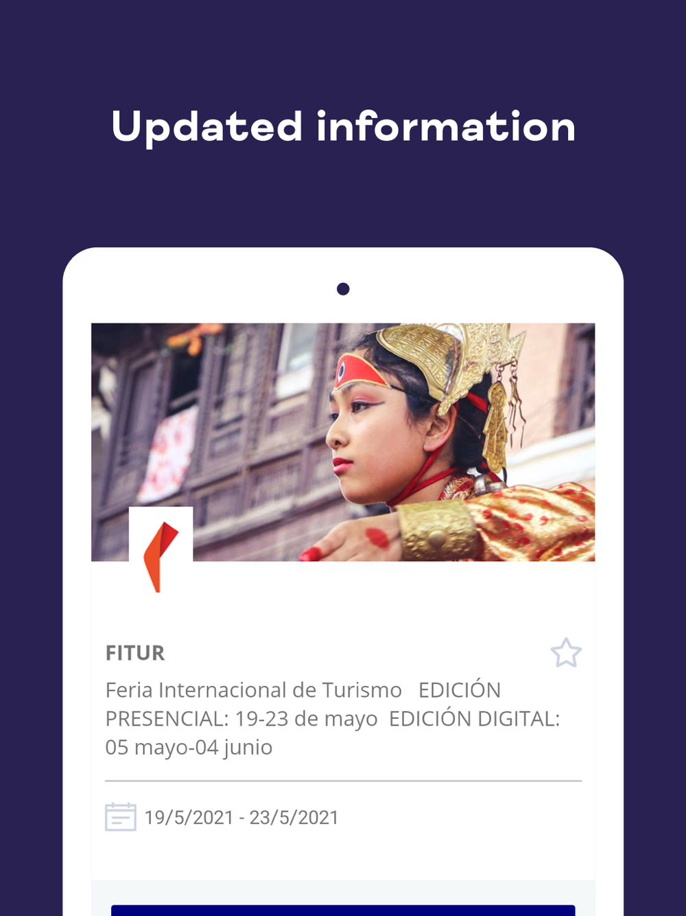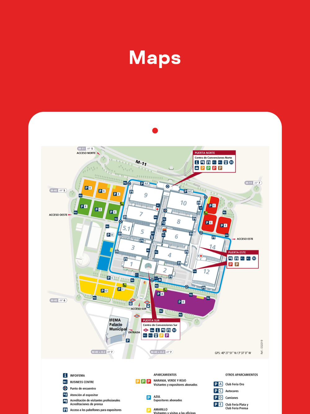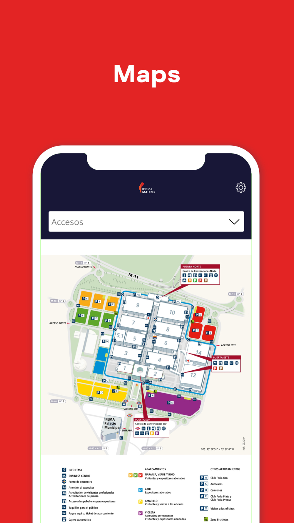 Welcome to the official IFEMA MADRID app! Here you can find out all the latest news of the hundreds of appointments that take place annually in our spaces Feria de Madrid and IFEMA Palacio Municipal, located in Campo de las Naciones, one of the best locations in the city of Madrid, perfectly connected by road, metro, bus and airplane. Select your favourite fairs, congresses, concerts, festivals and events, and find out all the details allowing notifications from our app. IFEMA MADRID is one of the key axes of Madrid's business and a point of reference within the international circuit of the trade fair and congress industry. Since its creation, it has played an important role in stimulating the economy and business activity, generating wealth in its surroundings and promoting the Madrid brand, and by extension Spain, on an international scale. IFEMA's annual activity hosts more than 600 calls from all sectors, in addition to a portfolio of around 100 specialized fairs and congresses that support the main economic sectors. Throughout its history, 100 million visitors and around 760,000 companies have participated in the 2,100 fairs organised by the Institution, which have generated 20,000 million euros of economic impact in the Community of Madrid. Feria de Madrid, located in the epicentre of the Iberian Peninsula, has unbeatable connections by all routes at national and international level. It has more than 200,000 square metres of covered exhibition space, which annually receives more than 3.5 million visitors from all over the world. The fairground is one of the largest meeting spaces in the world, characterised by the quality of its services, the modality of its design and the functionality, equipment and versatility of its facilities. For its part, IFEMA Municipal Palace is a versatile and functional space, making it an ideal venue for holding exhibitions, conventions, congresses, meetings or cultural events, with more than 30,000 m2 divided into large areas, Auditorium A, with capacity for 1,812 seats, a multipurpose room of 2,414 m2 gross and twenty-eight rooms with different uses.