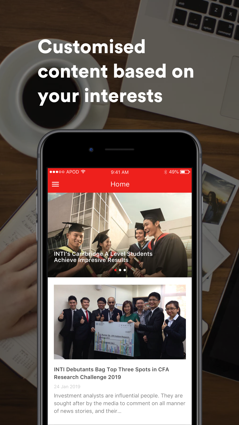The INTI Mobile app is a single place to keep up on happenings at INTI. Follow content that you are interested in, get special invites to events and contest, download and share photos, as well as getting in touch with our counsellors though chat sessions.