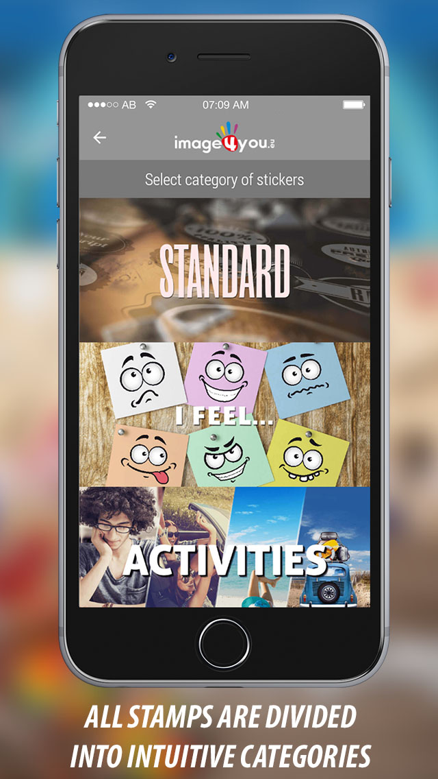 The IMAGE4YOU app allows you to take photos directly from your phone, add creative stamps / stickers from a category you want, add professional color effects or a text of your choosing.