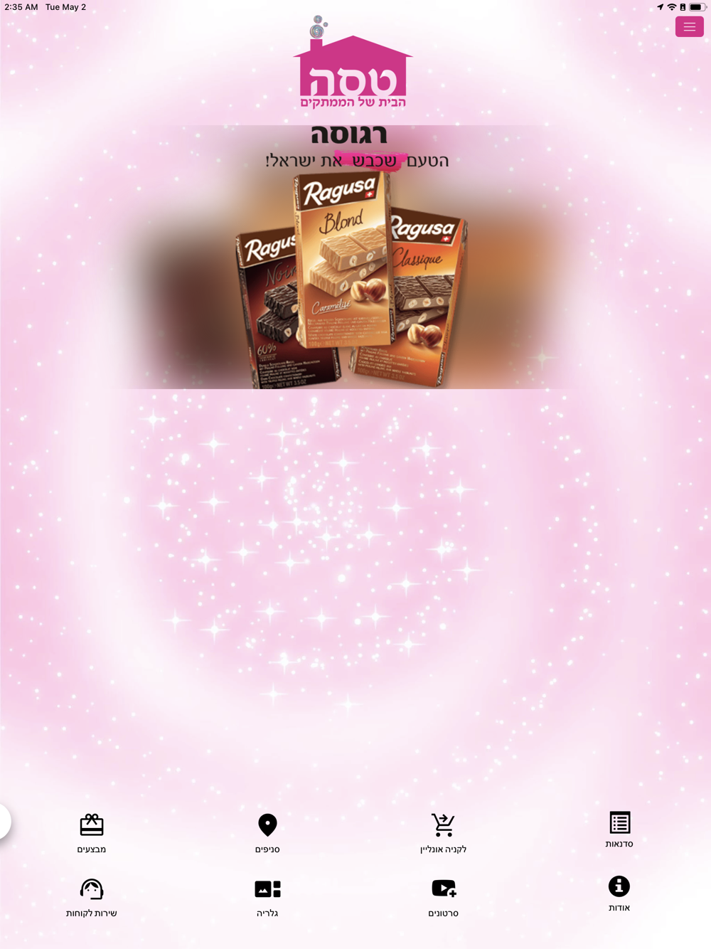 הרשת מייבאת עבורכם מגוון מוצרים איכותיים ובלעדיים שאינם קיימים בארץ, במחיר אטרקטיבי שיהפוך את החוויה בחנות למתוקה במיוחד. כשתגיעו לטסה תרגישו את חווית הילדות מחדש, עולם של ממתקים יפתח בפניכם, הילדים לא ירצו לעזוב לעולם... ויש לנו תחושה שגם אתם תרגישו בבית חם ומתוק.