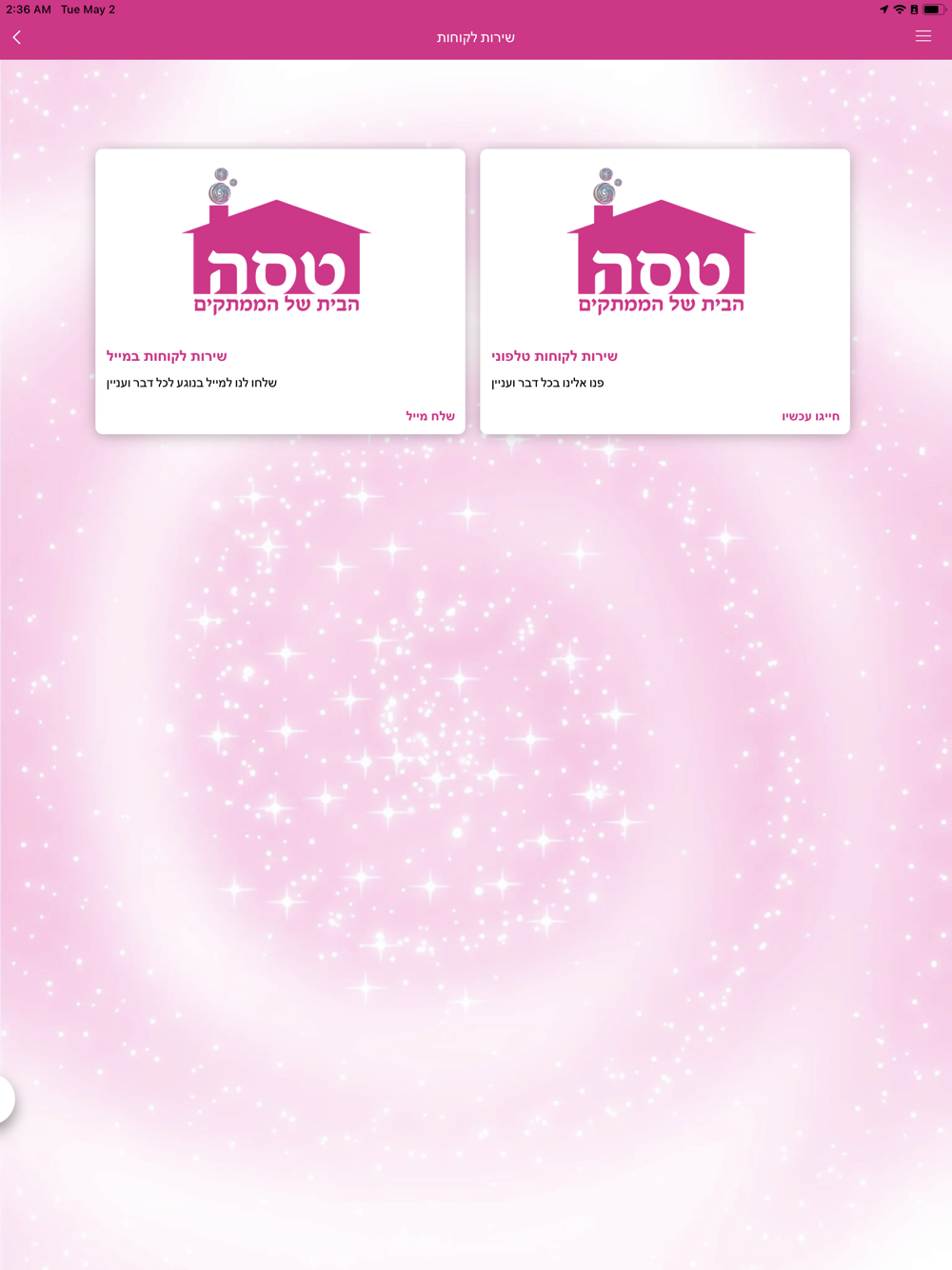 בחנויות תוכלו למצוא מחלקות אירועים המאגדות כל מה שצריך לכבוד חגיגה או מסיבה. את כל מוצרינו ניתן למצוא במגוון כשרויות לצד מחלקה מורחבת של מוצרים ללא גלוטן וללא תוספת סוכר, כך שכולם יכולים להוסיף מתיקות לחיים. רשת חנויות טסה ידועה ביחס האכפתי והאישי לקהל לקוחותיה והחיוך שלכם הוא ההנאה שלנו...